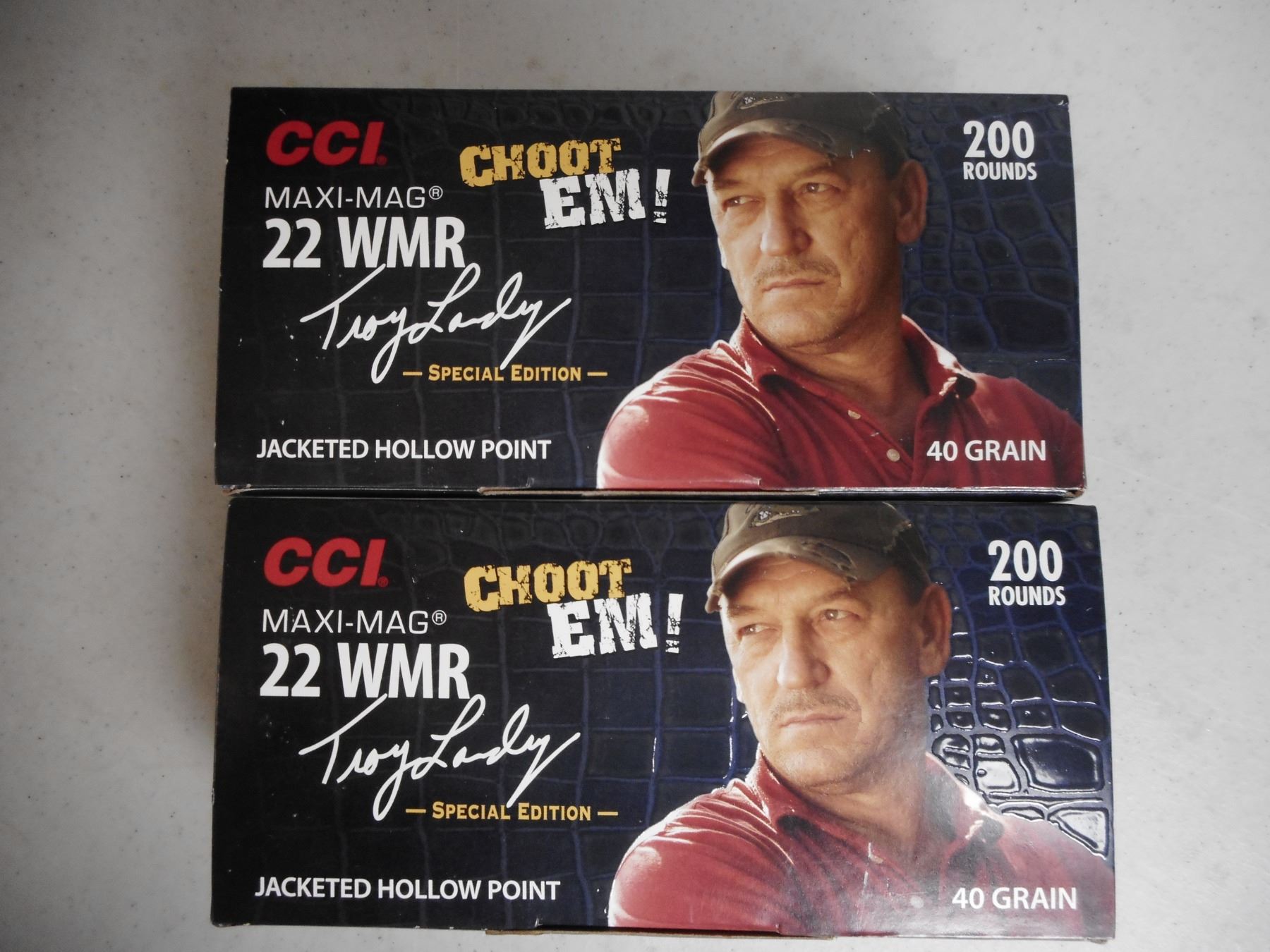 CCI 22 WMR TROY LANDRY SPECIAL EDITION AMMO , 400 RNDS 22 WMR MAXI-MAG, 40 GRNS, JACKETED HOLLOW POINT AMMO