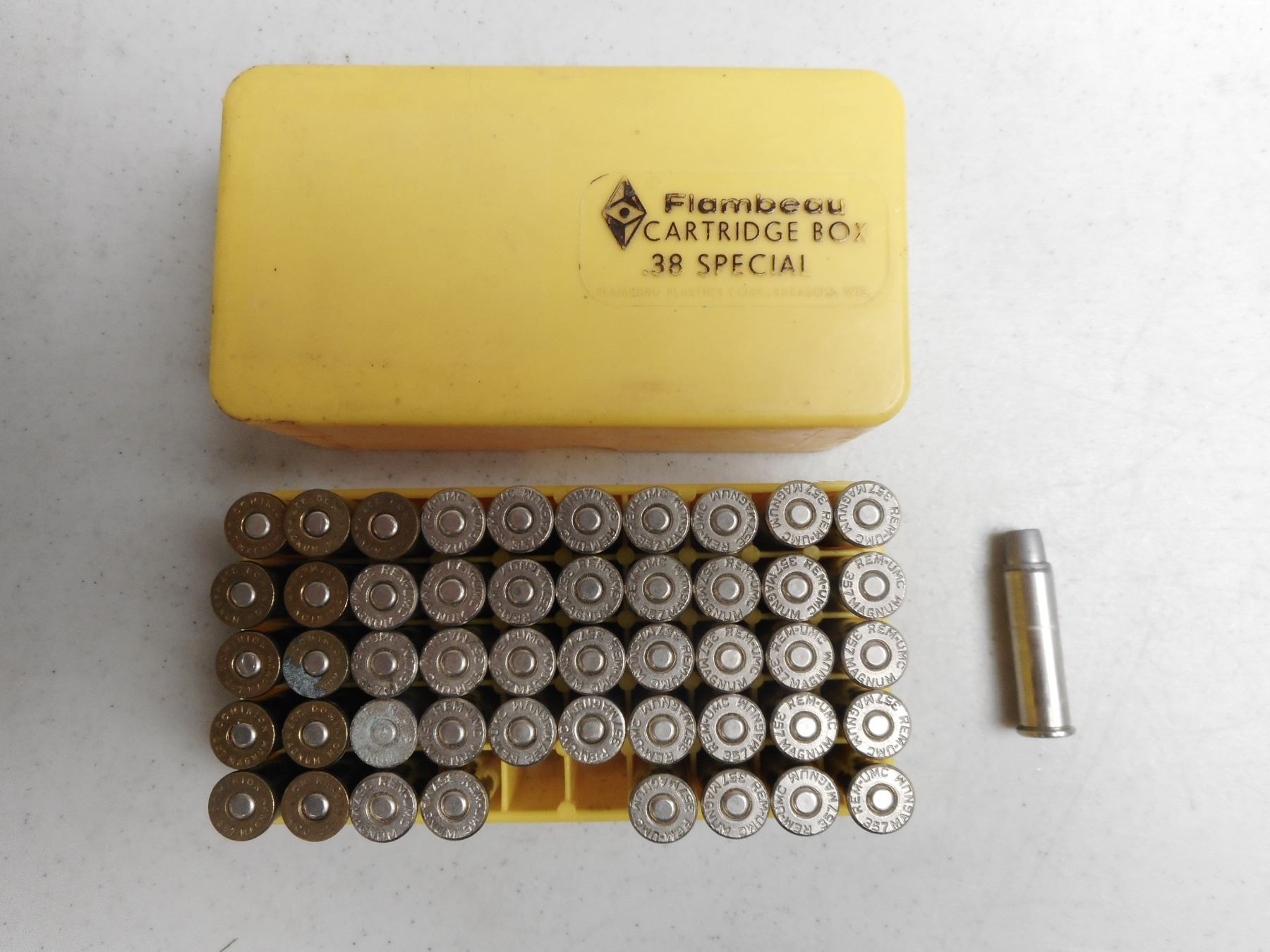ASSORTED .357 MAGNUM AMMO , 49 RNDS .357 MAGNUM, HEAD STAMPED DOMINION, AND REM-UMC, IN HARD PLASTIC CASE