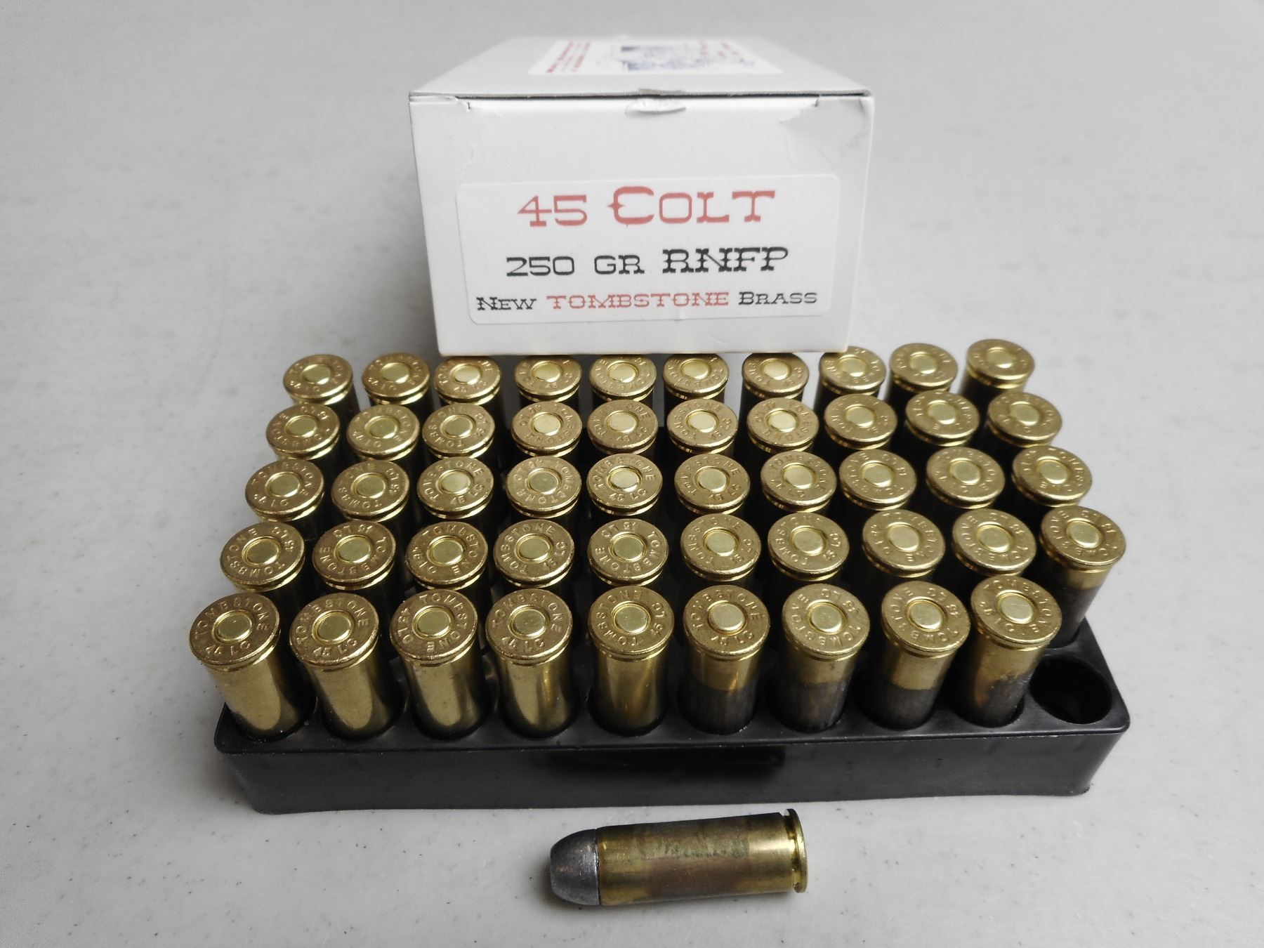 45 COLT AMMO , 50 RNDS 45 COLT TOMBSTONE AMMO, 250 GRNS