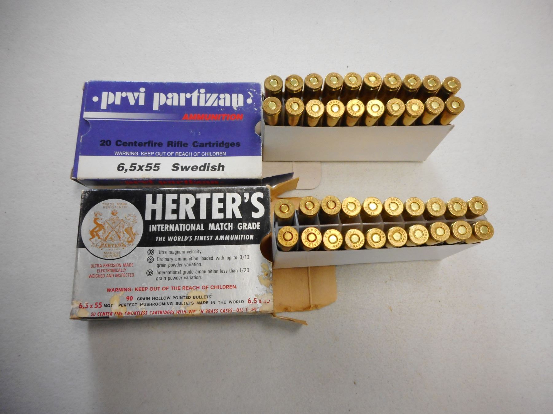 ASSORTED 6.5X55 AMMO , 40 RNDS 6.5X55 AMMO