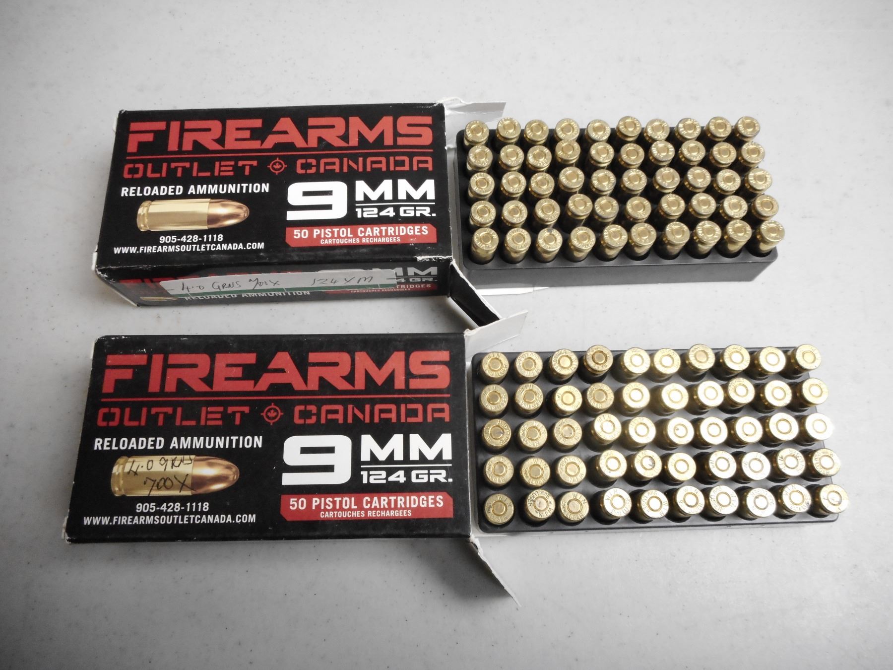 9MM FIREARMS RELOADED AMMO , 100 RNDS 124 GRNS RELOADED AMMO