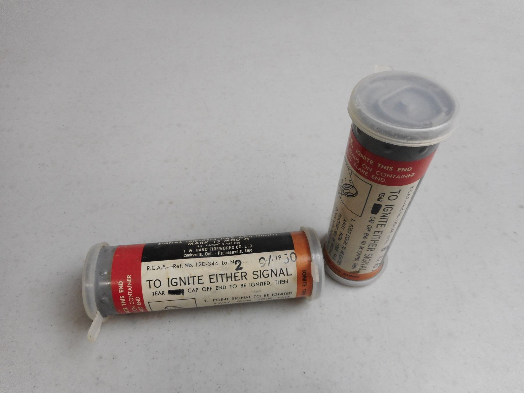NIGHT//DAY FLARE , 2 SIGNAL (DISTRESS DAY AND NIGHT) MARK 13 MOD 0. T.W. HAND FIREWORKS CO LTD.