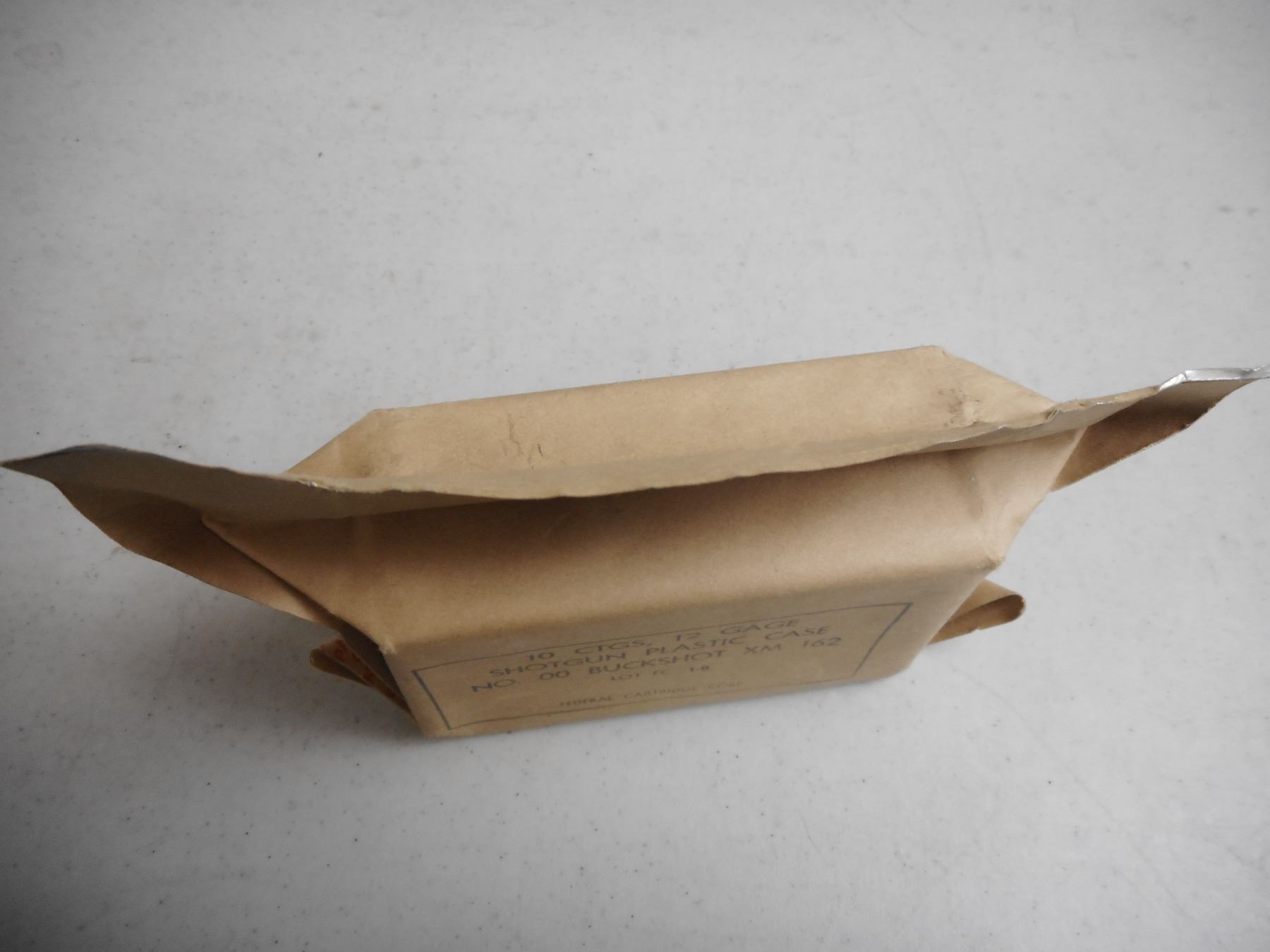 CHAMPION 12 GAGE SHOTGUN PLASTIC CASE, DATED MARCH 1970 , 10 CTGS, 12 GAGE SHOTGUN PLASTIC CASE, NO. 00 BUCKSHOT DATED MARCH 1970, IN SEALED PACKAGE