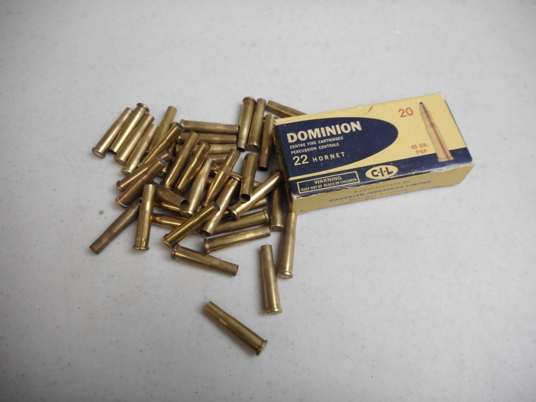 22 HORNET BRASS WITH VINTAGE DOMINION BOX , 60 RNDS 22 HORNET BRASS WITH VINTAGE DOMINION 22 HORNET BOX