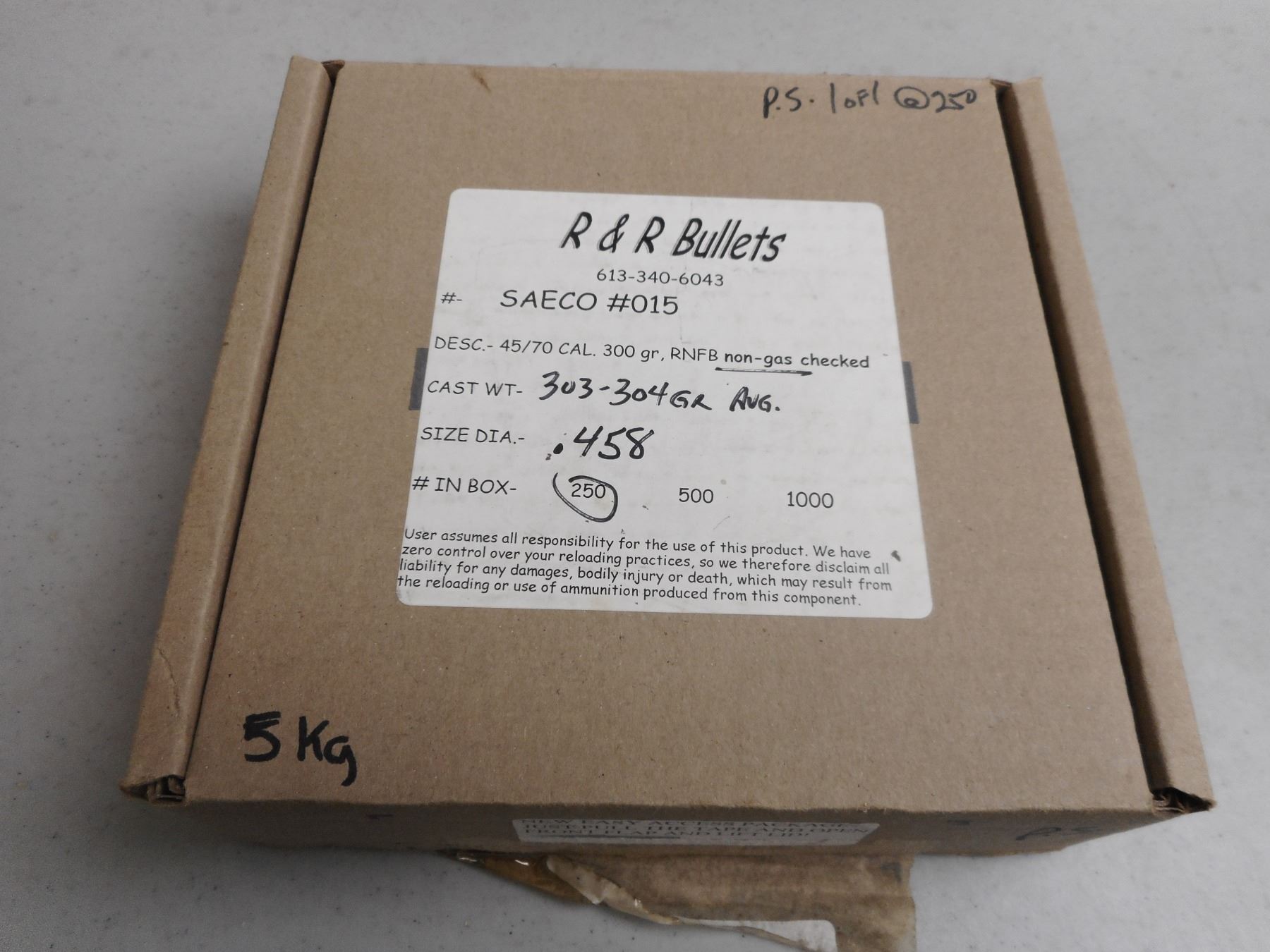 R & R BULLETS 45/70 CAL BULLET , 5 KG BOX OF 45/70 CAL. 300 GRNS, RNFB NON-GAS CHECKED BULLETS