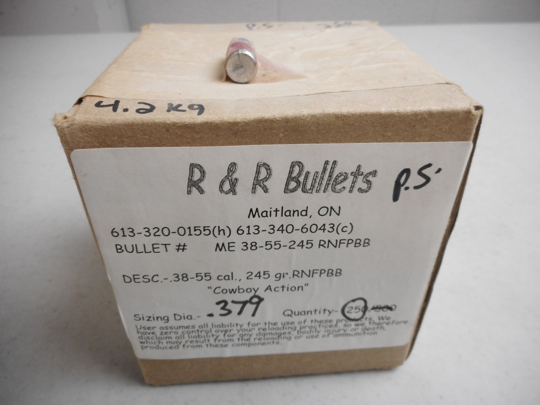 R & R BULLETS .38-55 CAL. BULLET , 4.2KG BOX OF .38-55 CAL, 245 GRNS, RNFPBB "COWBOY ACTION" BULLETS