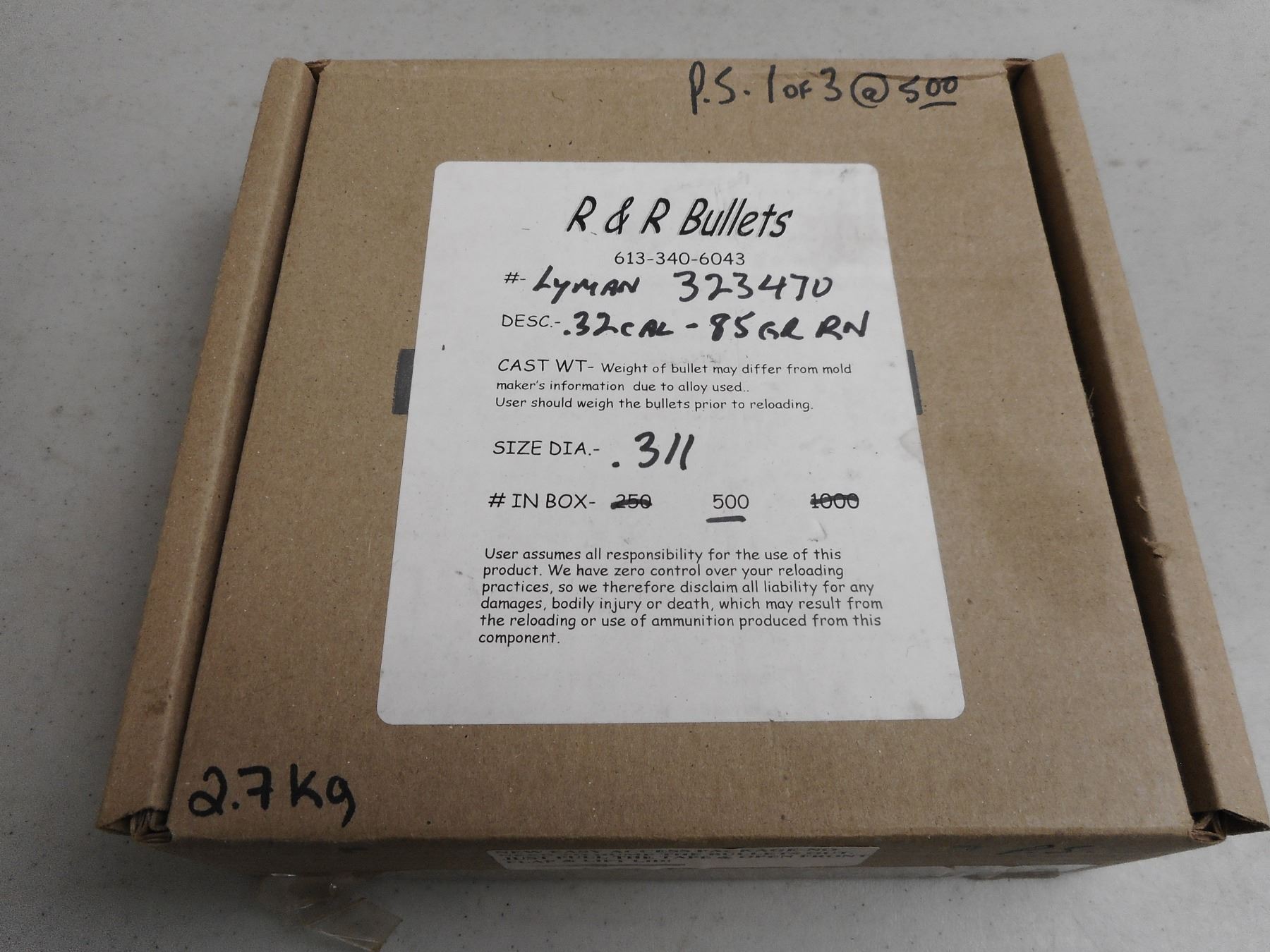 R & R BULLETS, .32 CAL. BULLET , 2.7KG BOX OF .32 CAL., 85 GRNS, RN BULLETS