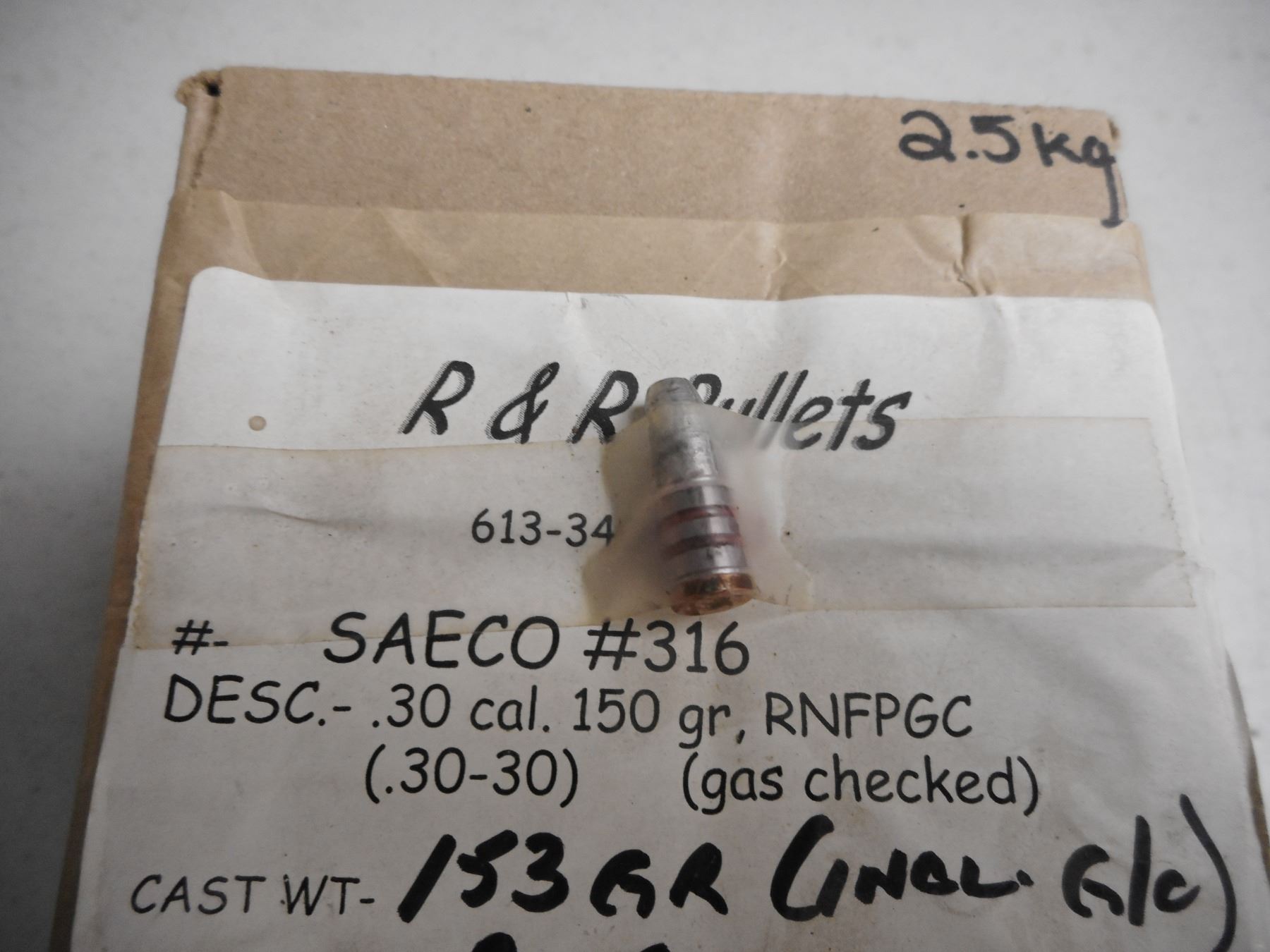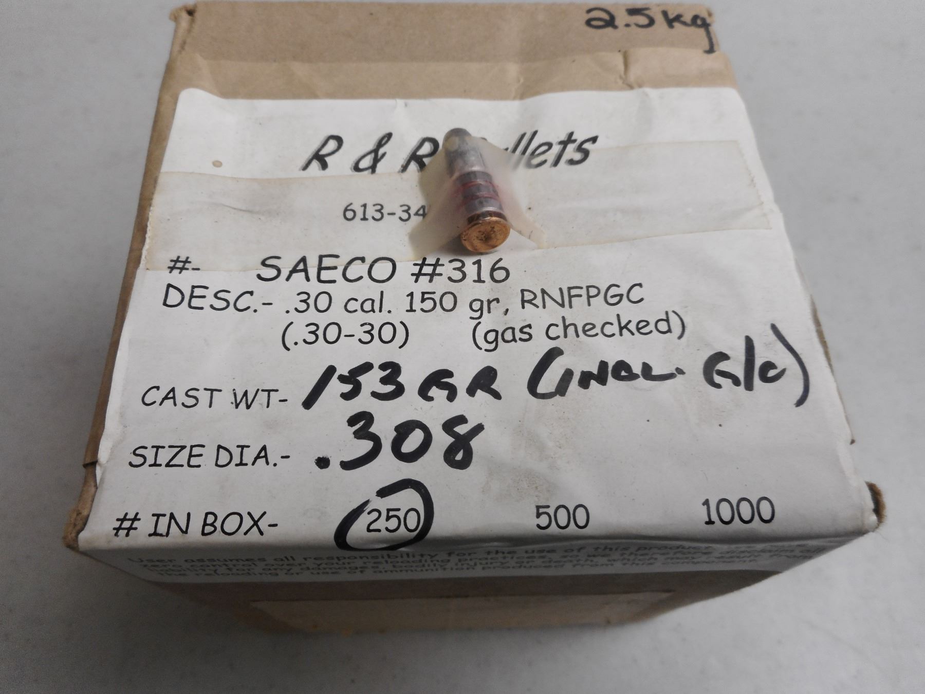 R & R BULLETS .30 CAL BULLET , 2.5 KG BOX OF .30 CAL(.30-30) 150 GRNS, RNFPGC BULLETS