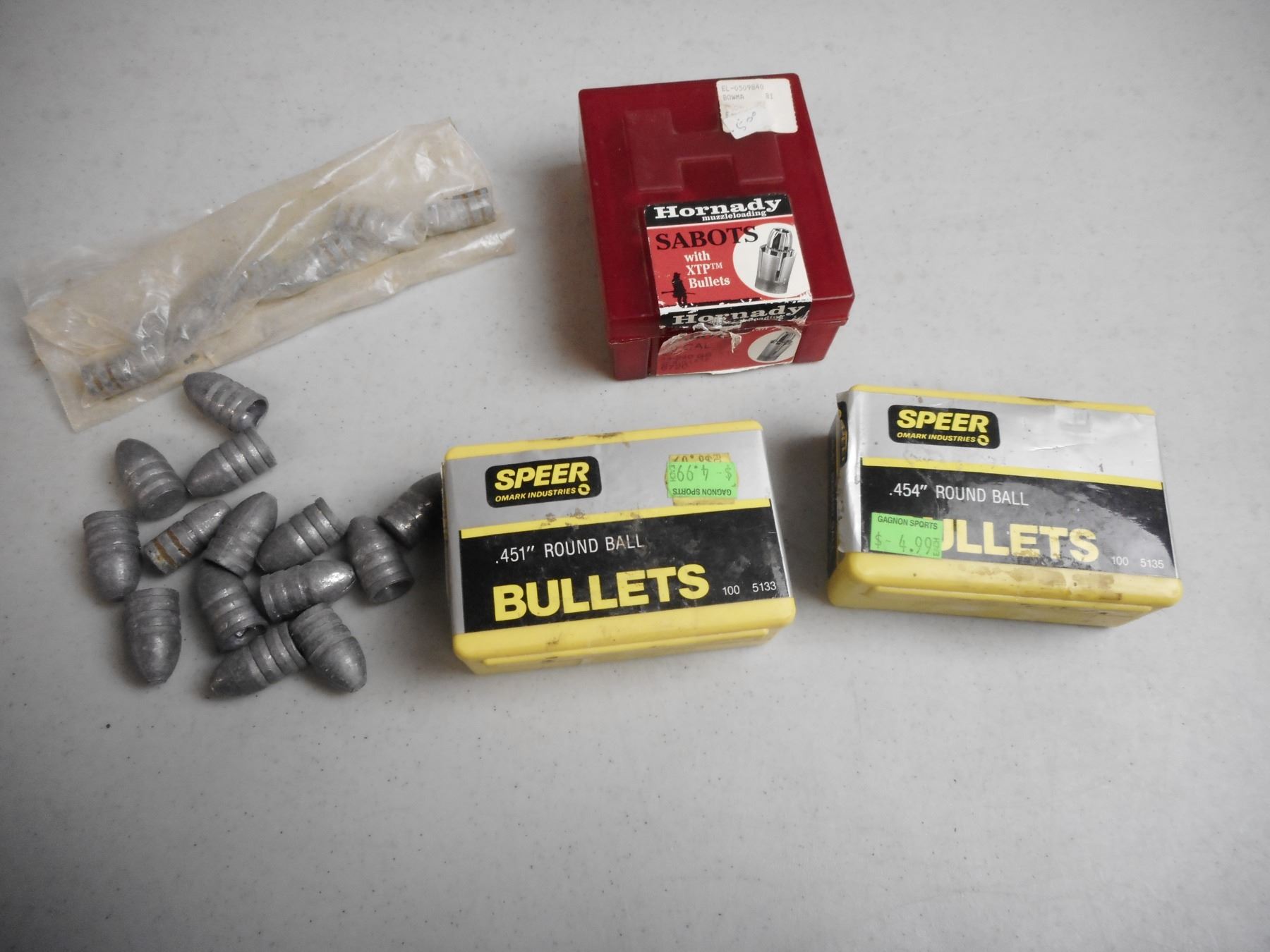 ASSORTED BULLETS, HORNANDY 50 CAL, SPEER .451: ROUND BALL, .454" ROUND BALL, .115" DIA BULLET, .228" BULLET , 2.3 KG ASSORTED BULLETS AND BALLS, HORNANDY 50 CAL, SPEER .451" ROUND BALL, .454" ROUND BALL, .115" DIA. BULLET, .228" DIA. BULLET