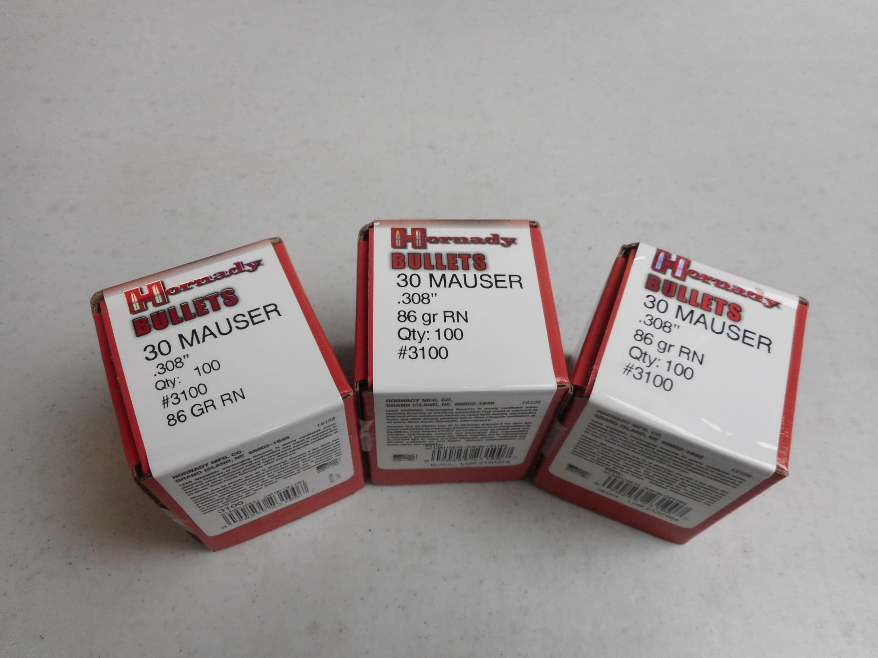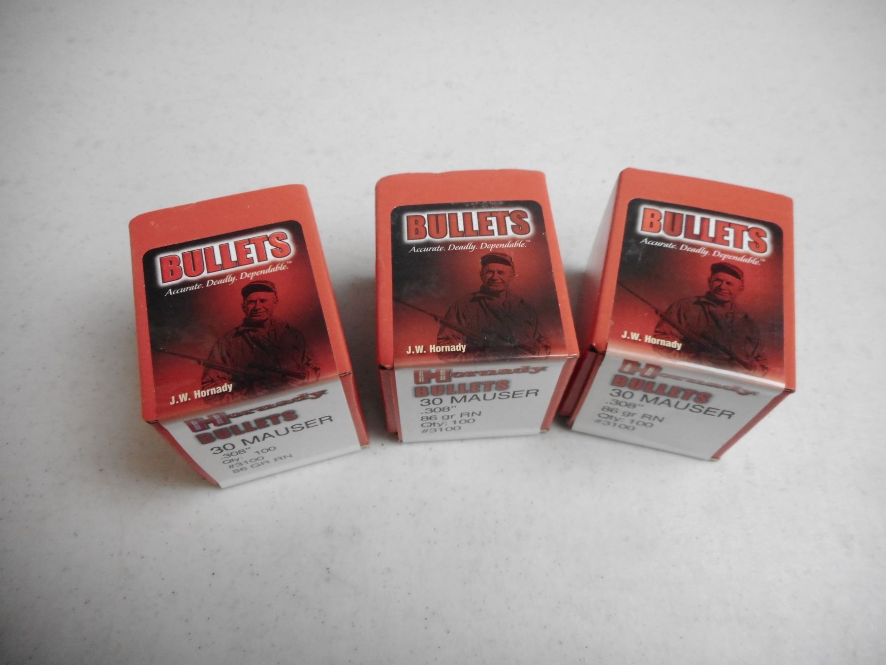 HORNADY BULLETS 30 MAUSER BULLET , 300 BULLETS 30 MAUSER 86 GRNS RN BULLETS