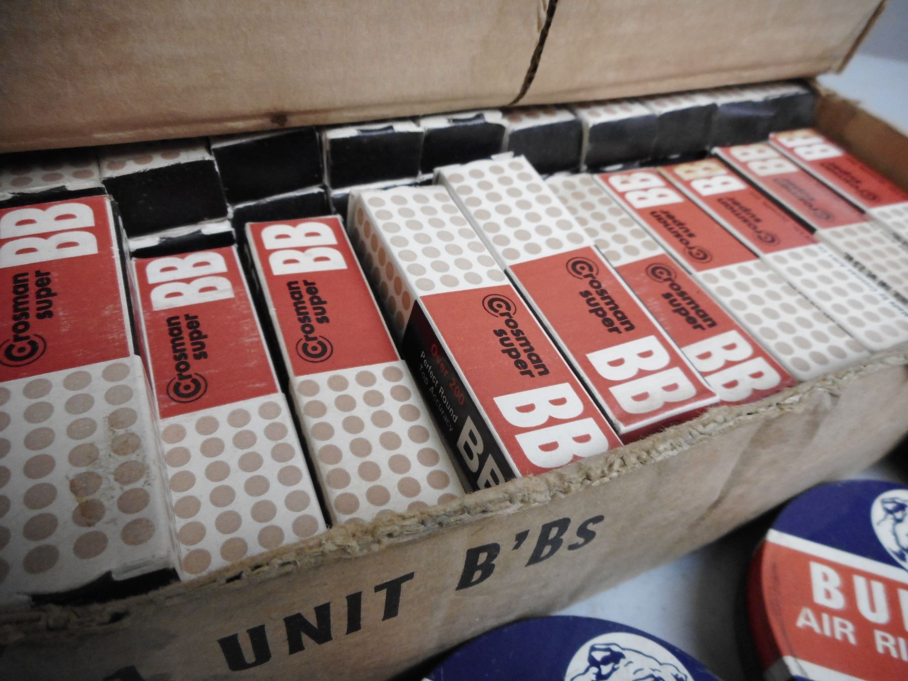 ASSORTED BB'S AND PELLETS , 92 BOXES OF APPROX. 200 BB'S/ 5 TINS OF BULLDOG AIR RIFLE PELLETS, 1 TIN CROSMAN SUPER PELLS APPROX. 500