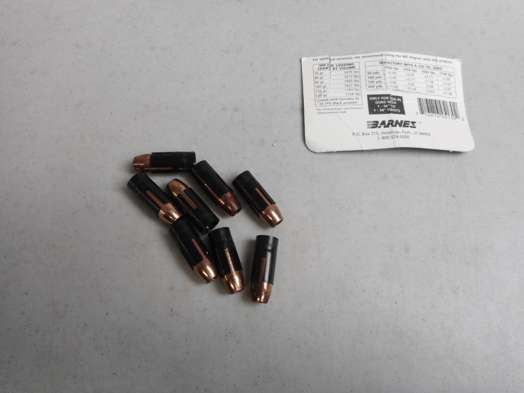 BARNES .50 CAL SABOT BULLETS , 8 BARNES .50 CAL SABOT BULLETS