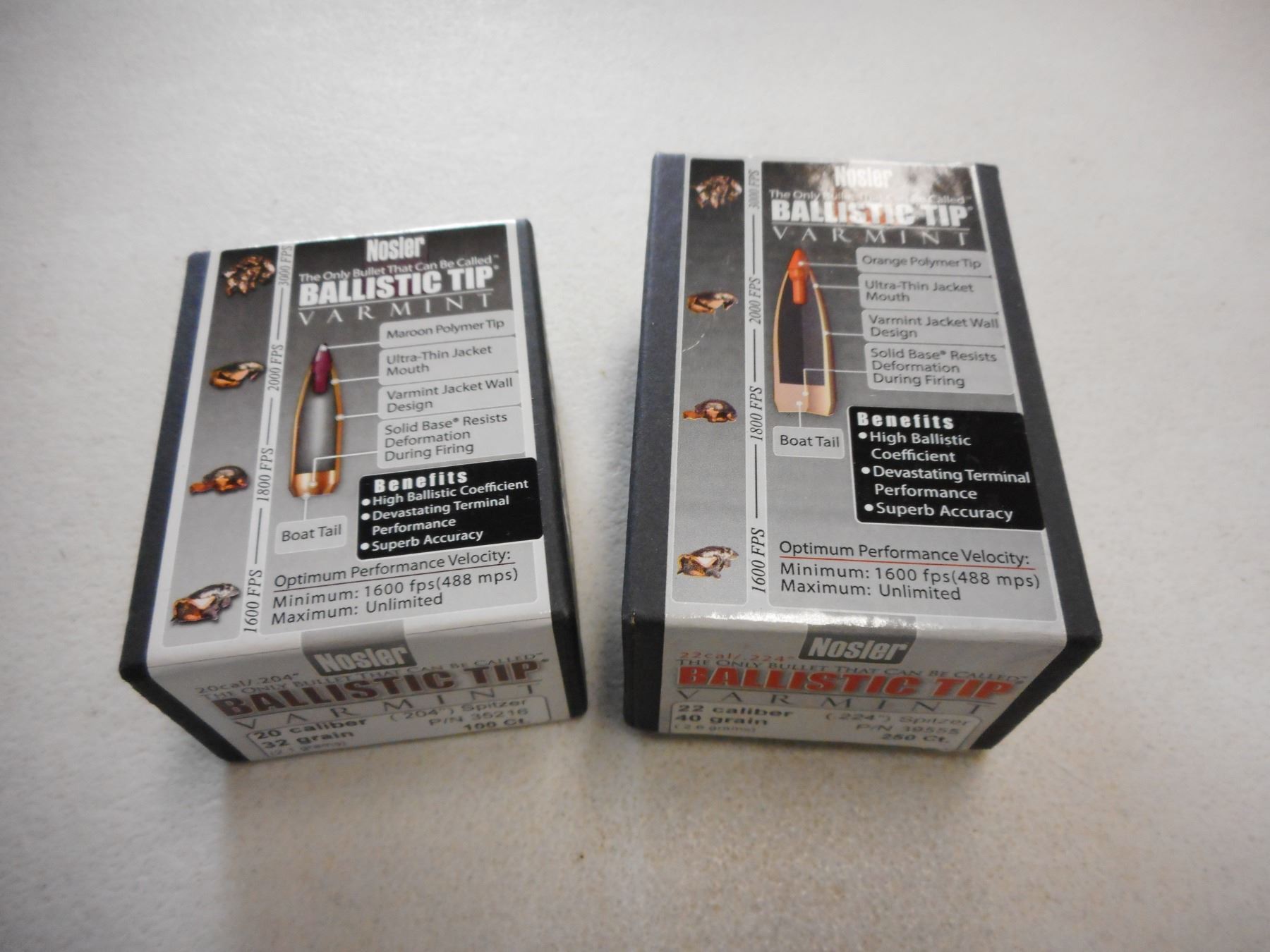 NOSLER 22 CALIPER BULLETS , 100 20 CALIPER 32 GRNS, 250 22 CALIPER 40 GRNS BULLETS