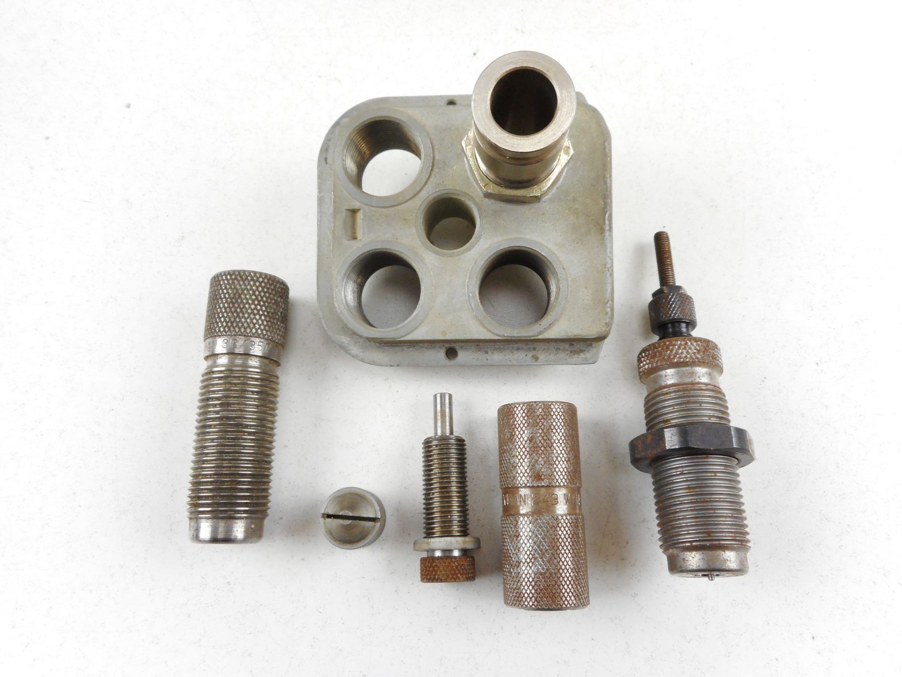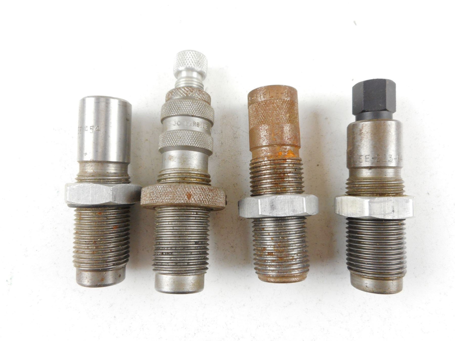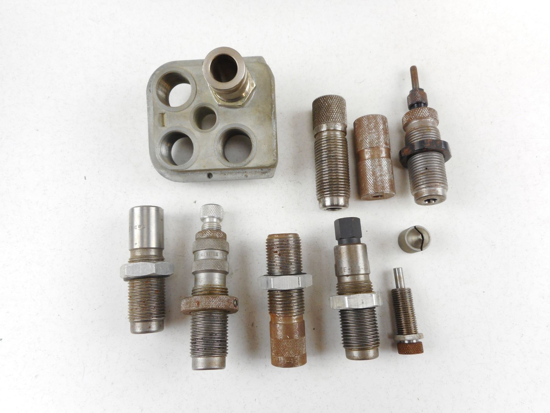 ASSORTED RELOADING DIES , 38/357 TRAPER CRIMP, LEE 454, 30 CAL, LYMAN 243 WIN, LEE .223-84, .22 CAL, LEE RIFLE # 85