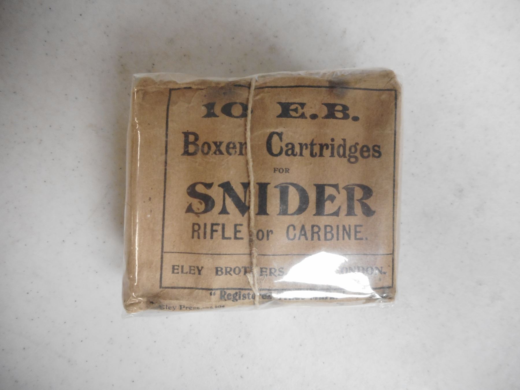 BOXER CARTRIDGES SNIDER RIFLE OR CARBINE AMMO , 10 RNDS BOXER CARTRIDGES SNIDER RIFLE OR CARBINE AMMO, JOHN, A. BELTON COLLECTION