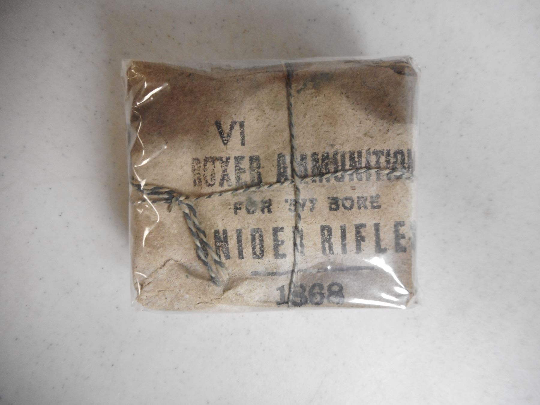 VI BOXER AMMUNITION FOR '577 BORE SNIDER RIFLES 1868 , 10 RNDS VI BOXER AMMUNITION FOR .577 SNIDER RIFLES , JOHN, A. BELTON COLLECTION