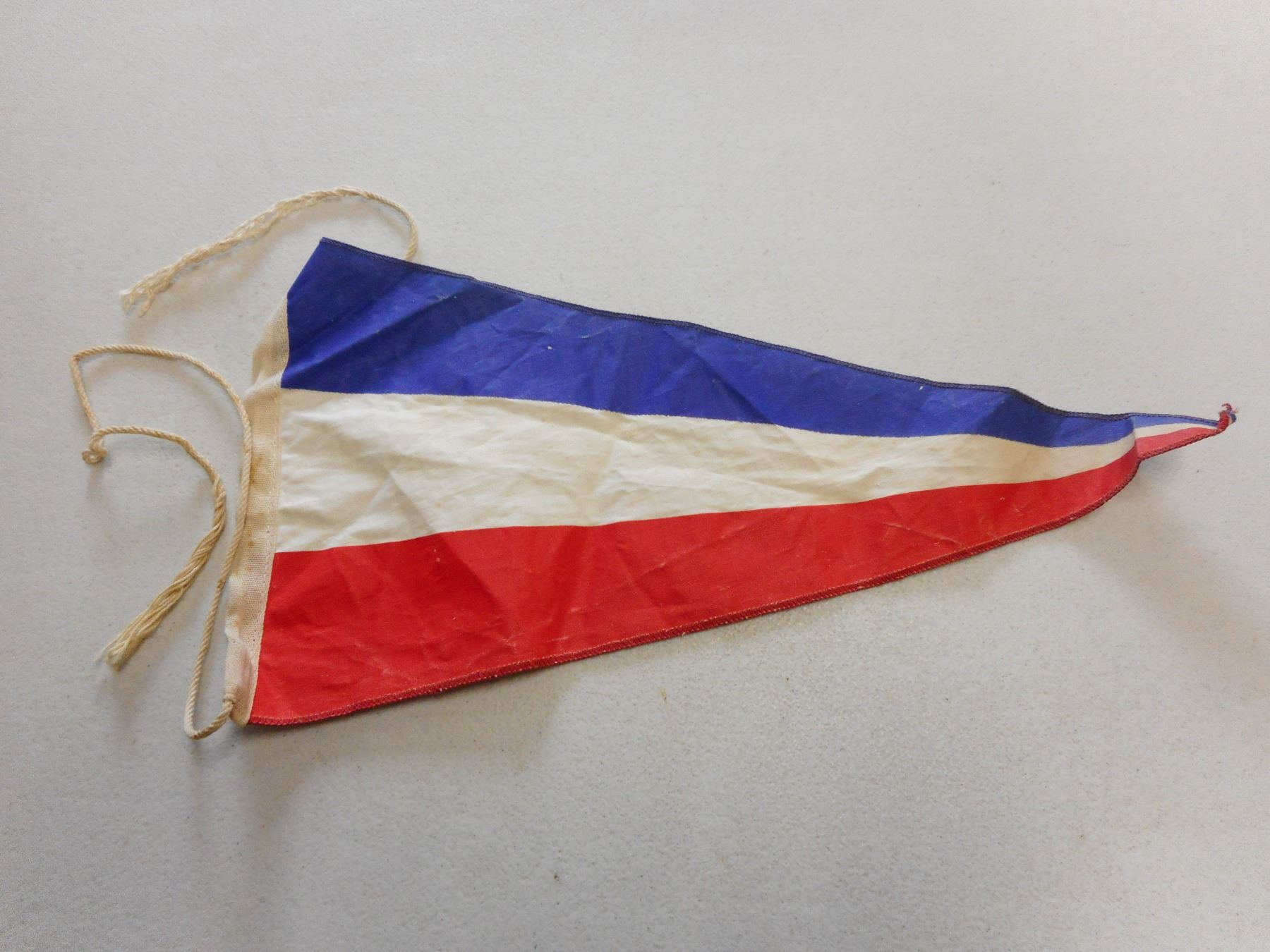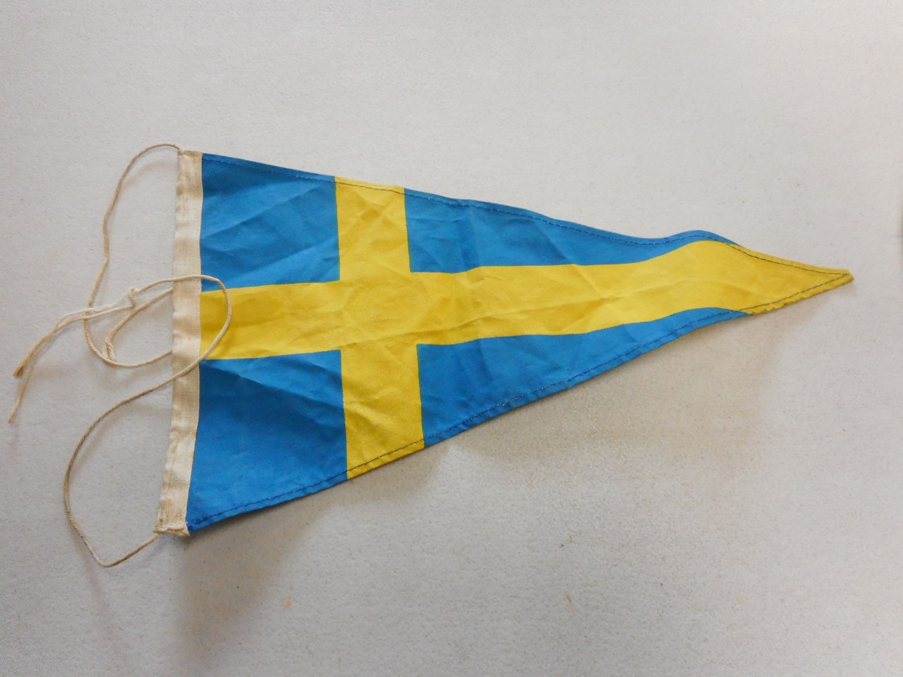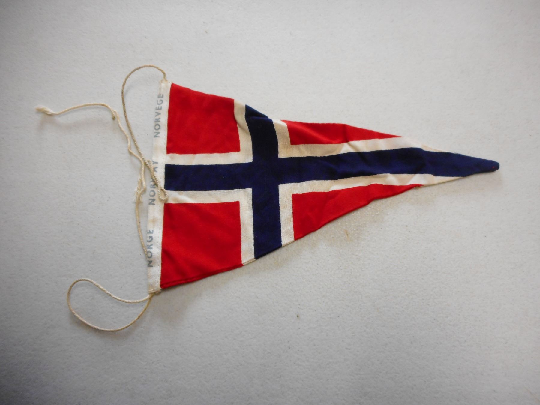 ASSORTED COUNTRY FLAGS & RIBBON ROLL, (3) TRIANGULAR FLAGS: NORWAY, NETHERLANDS, SWEDEN, (1) ROOL OF RIBBON: BRITISH KOREAN MEDAL RIBBON