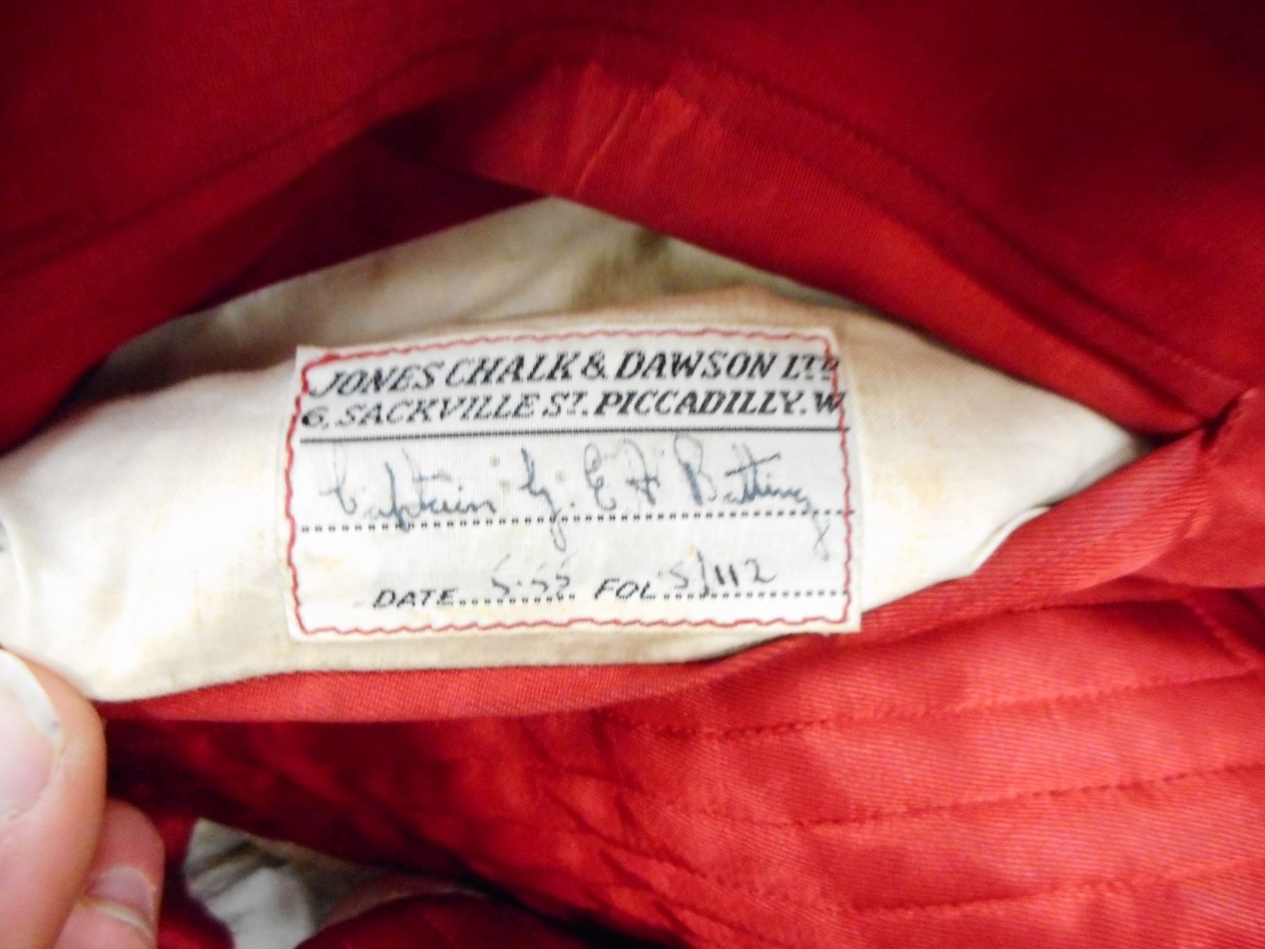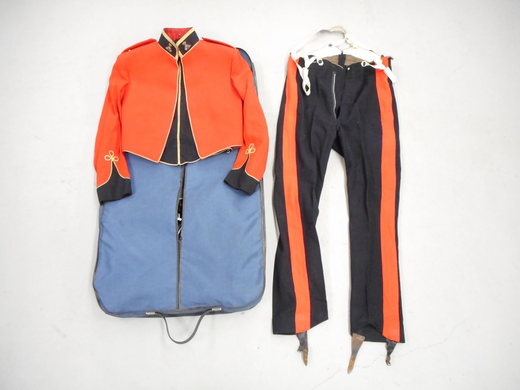 OFFICERS (MESS) DRESS COAT, VEST & PANTS, RED & BLACK WITH PADDED COLLAR BADGES & EPAULETTE BADGES, LABELLED CAPTAIN E A BOTTING DATED 5.55, WITH BLACK VEST IN CONJUNCTION WITH BOTTING ITEMS, WITH PANTS IN GARMET BAG