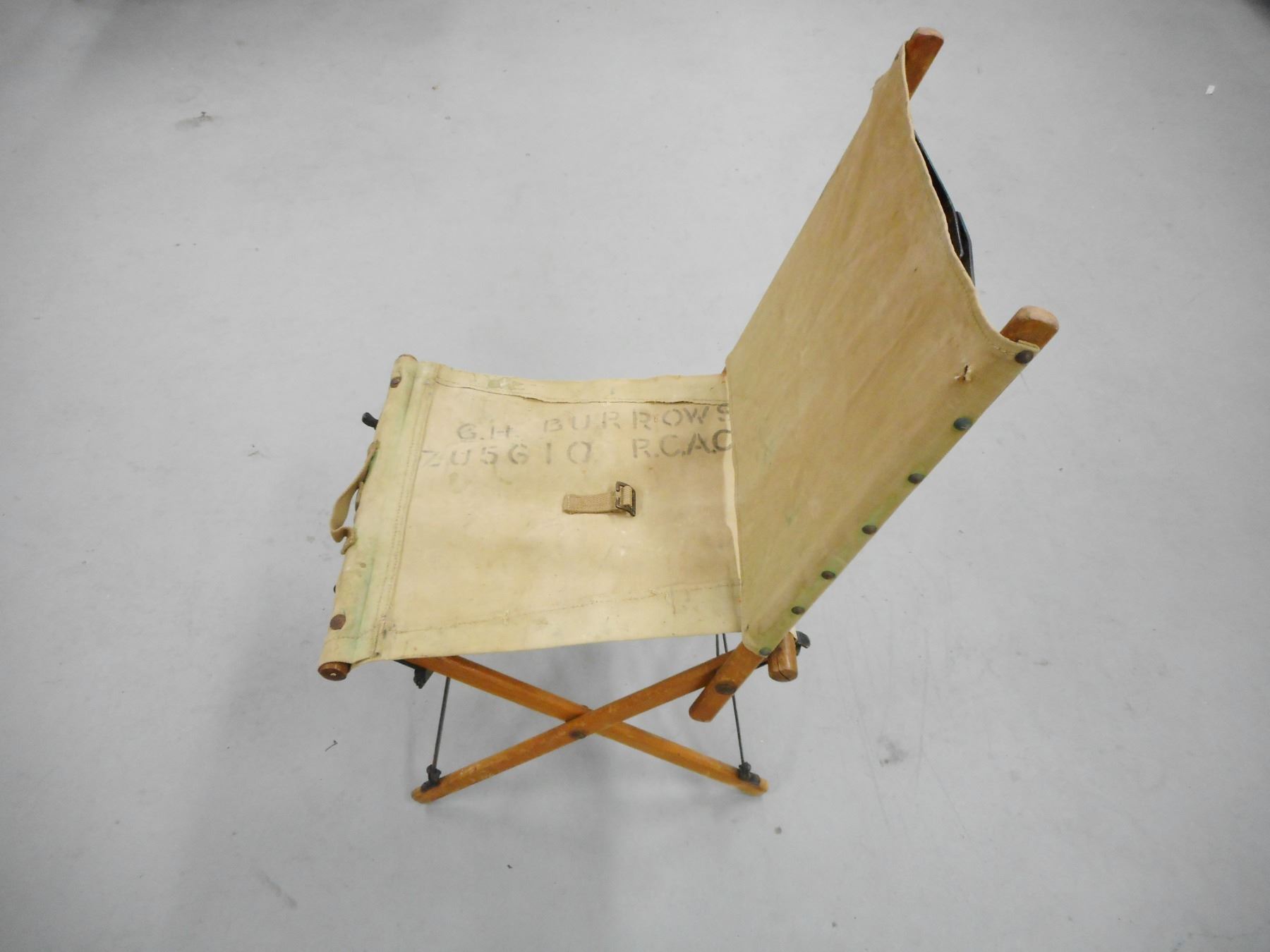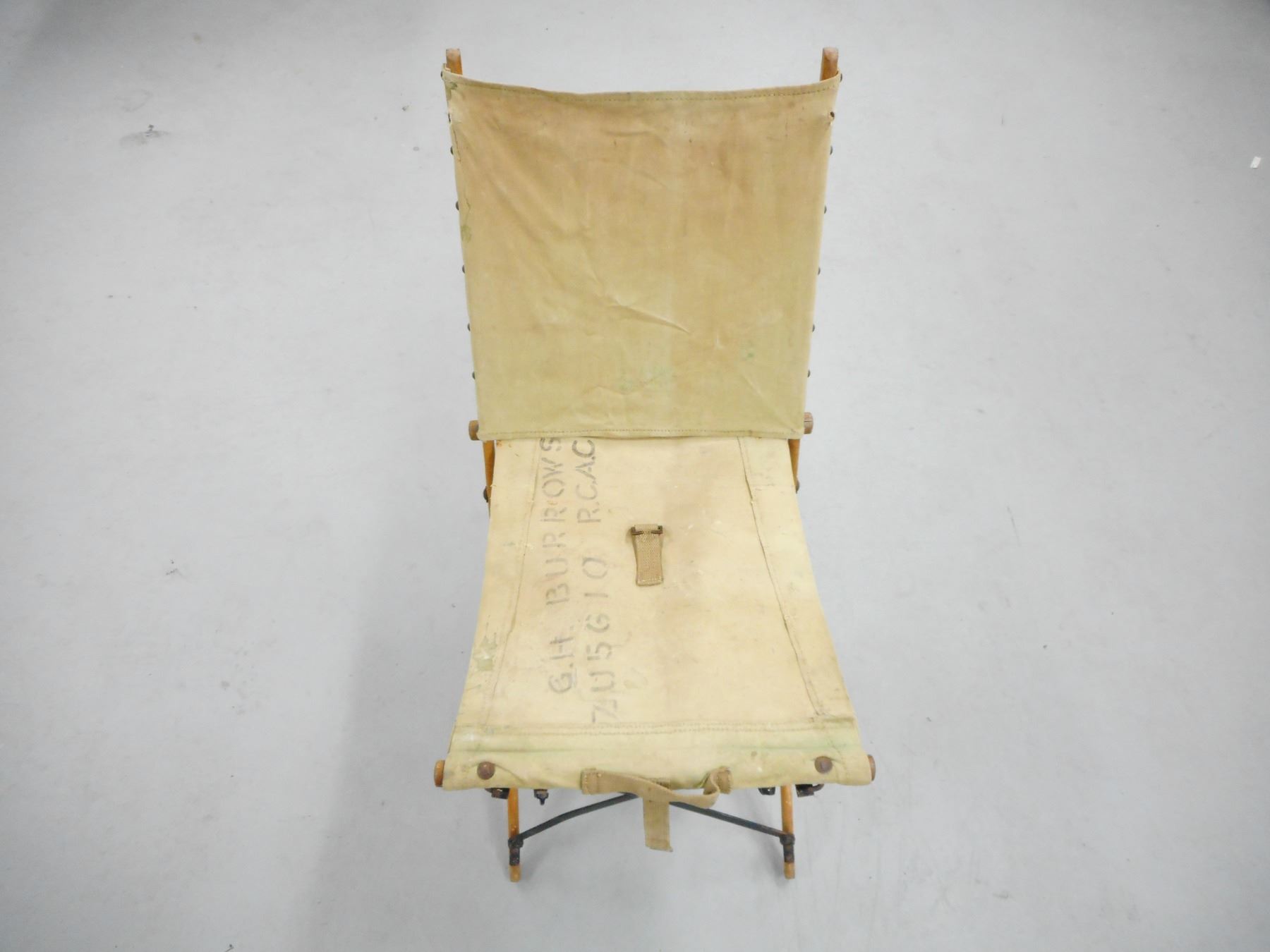 MILITARY FIELD CHAIR , STAMPED G.H. BURROWS R.C.A.C.