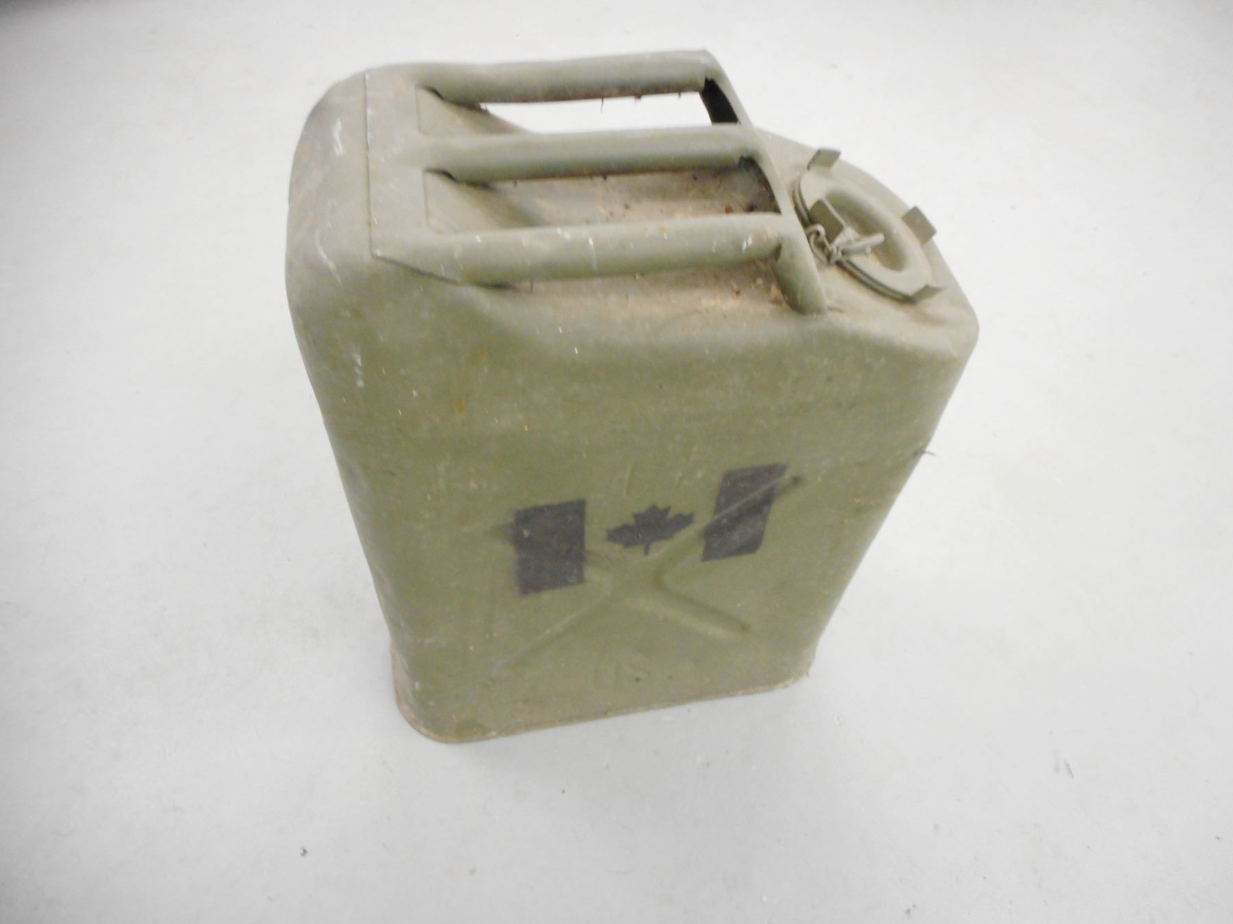 CDN MILITARY JERRY/GAS CAN , OLIVE DRAB, WITH CANADA FLAG STAMP AND LETTER G