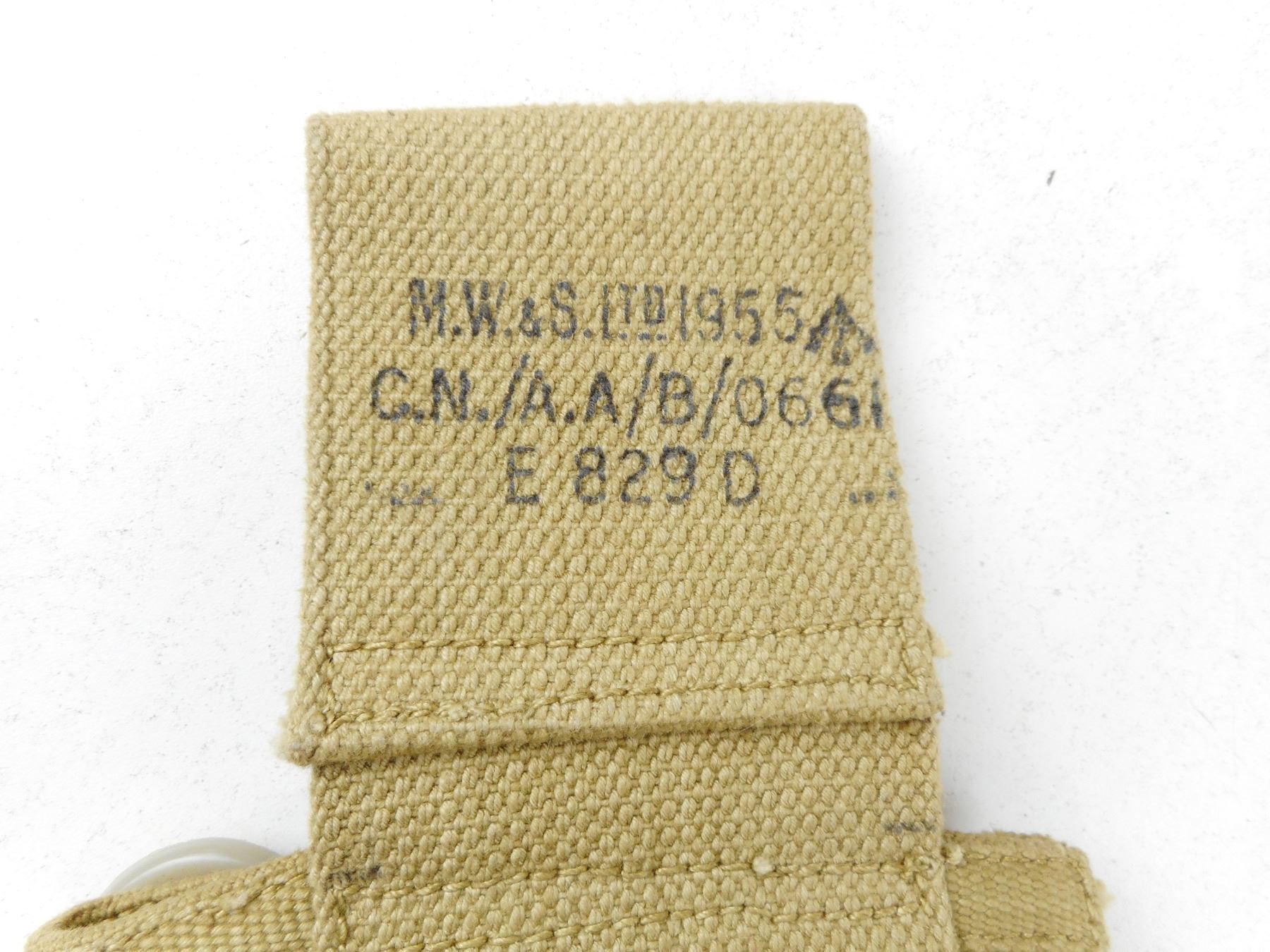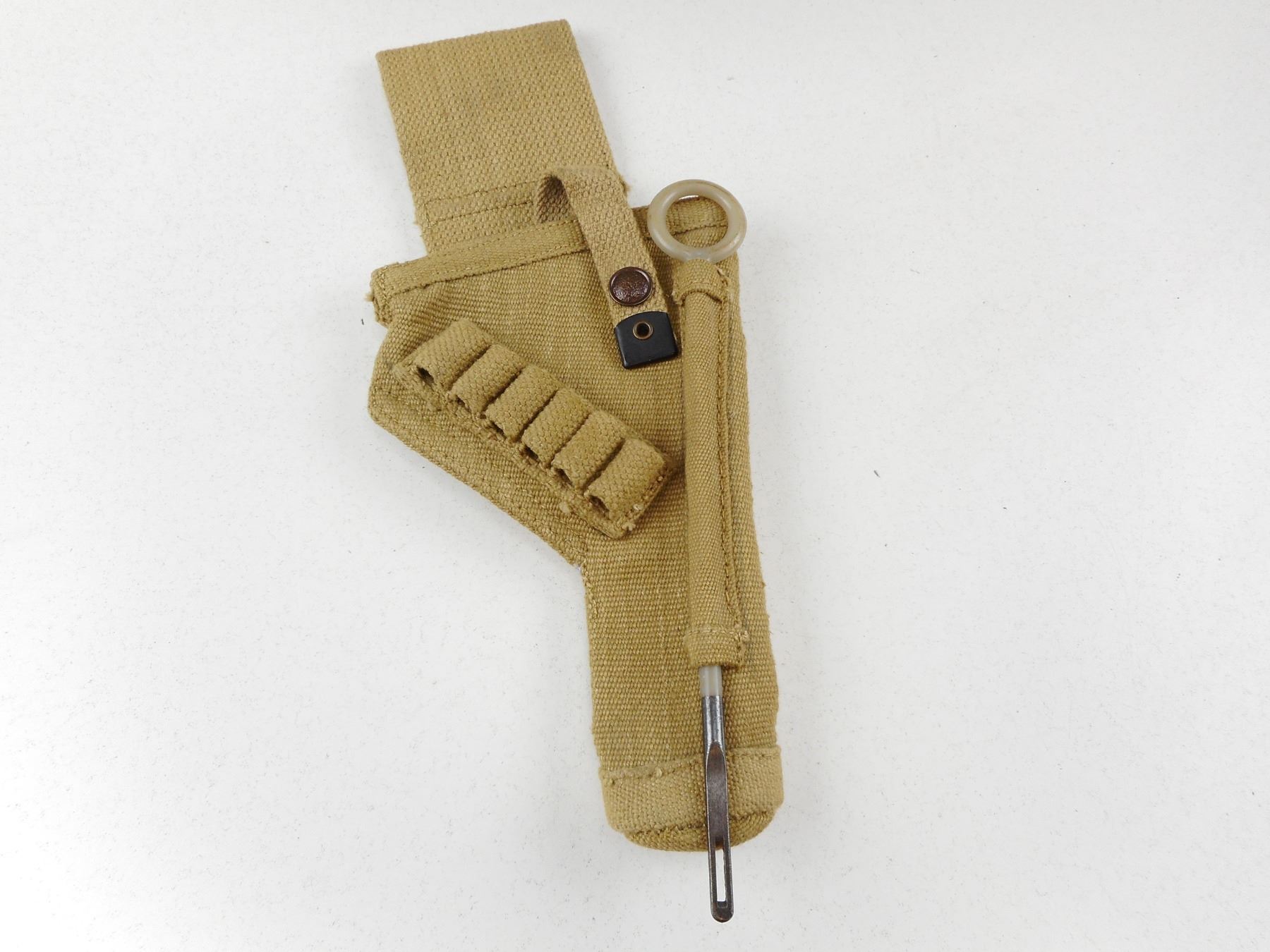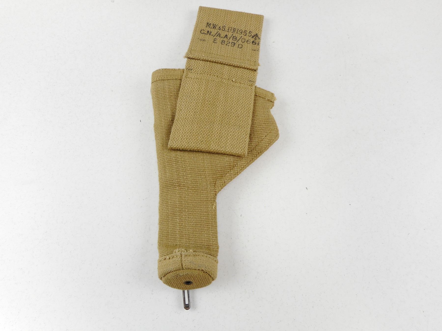 BRITISH MILITARY HOLSTER , CANVAS STAMPED M.W.&S. LTD. 1955 WITH BRAOD ARROW MARK INCLUDES CLEANING ROD