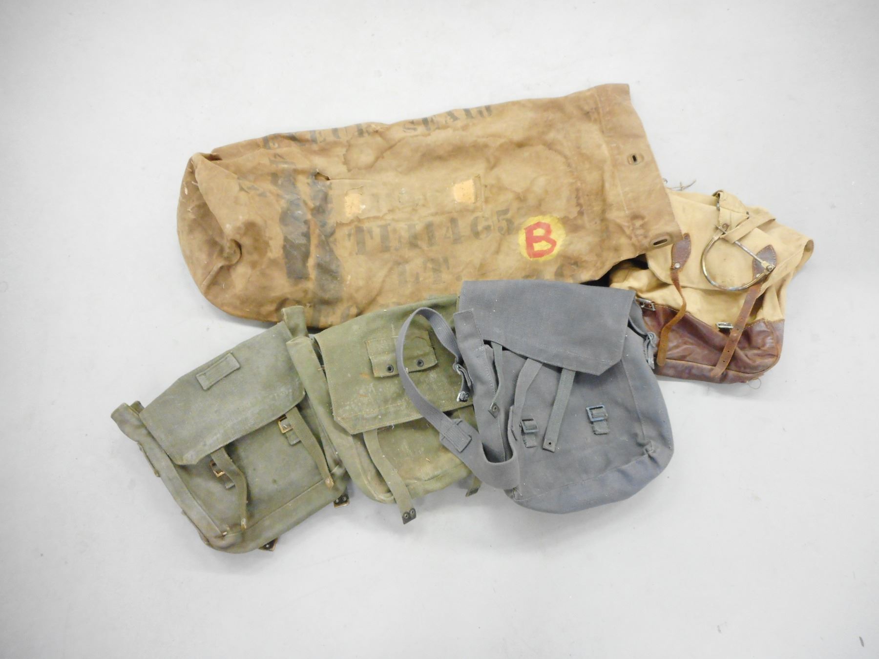 ASSORTED CANVAS SATCHELS & SACKS , (2) MARKED G. BOTTING, LOT OF 5