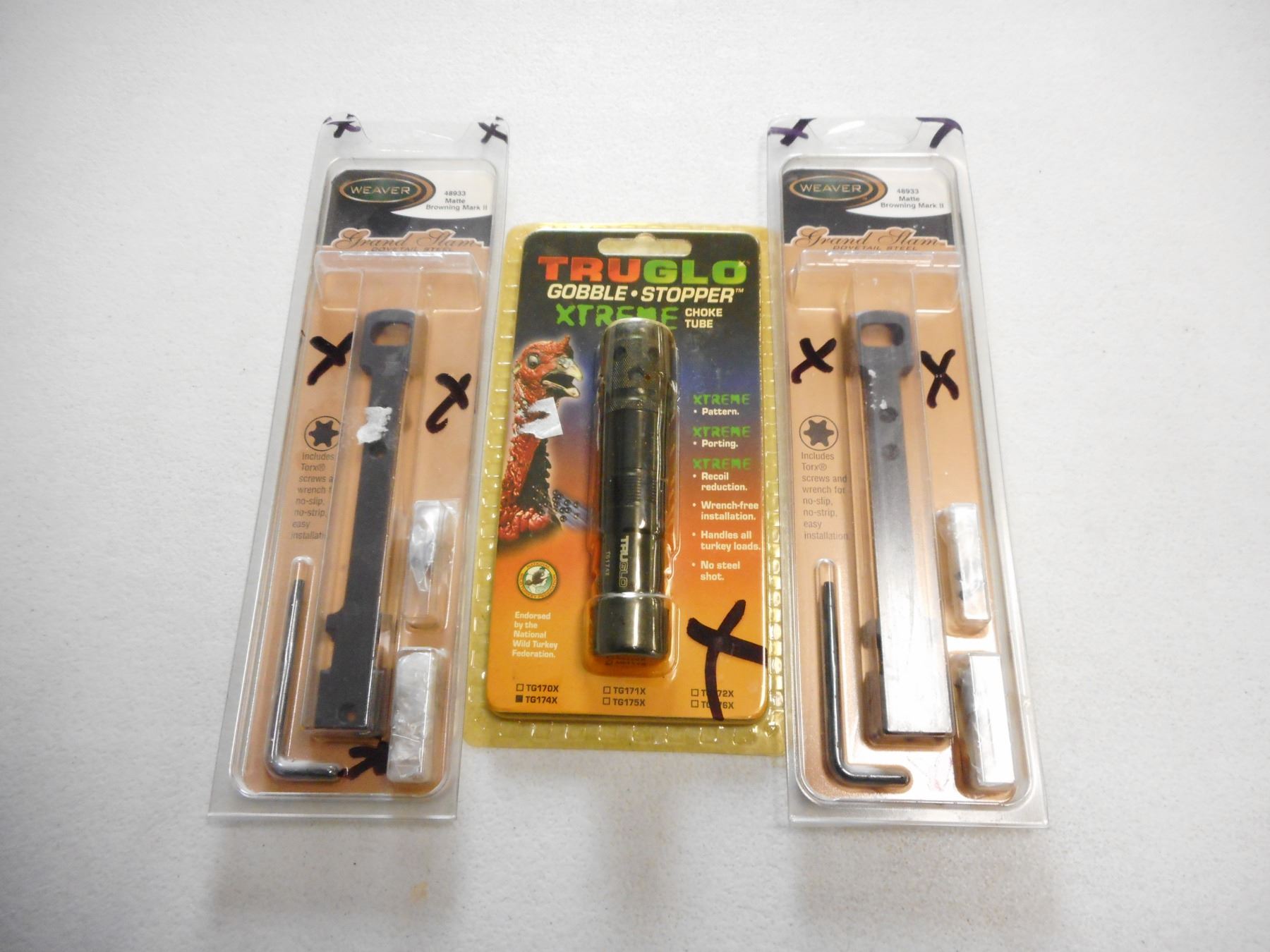 WEAVER SCOPE MOUNTS & TRUGLO TURKEY CHOKE, (2) WEAVER MOUNTS FOR BROWNING MK II, (1) TRUGLO XTREME CHOKE TUBE FOR BERETTA OPTIMA, ALL IN ORIGINAL PACKAGING, LOT OF 3