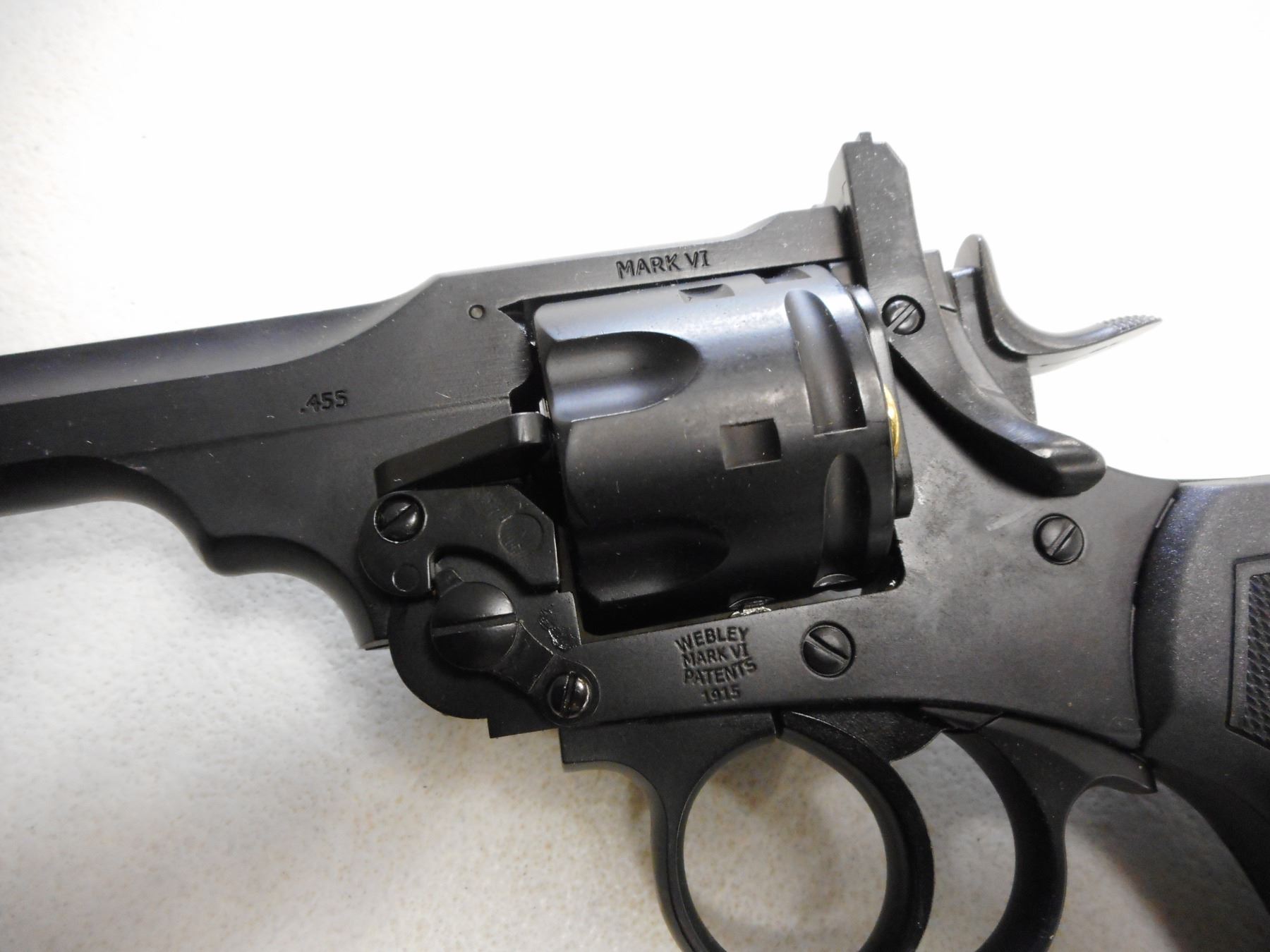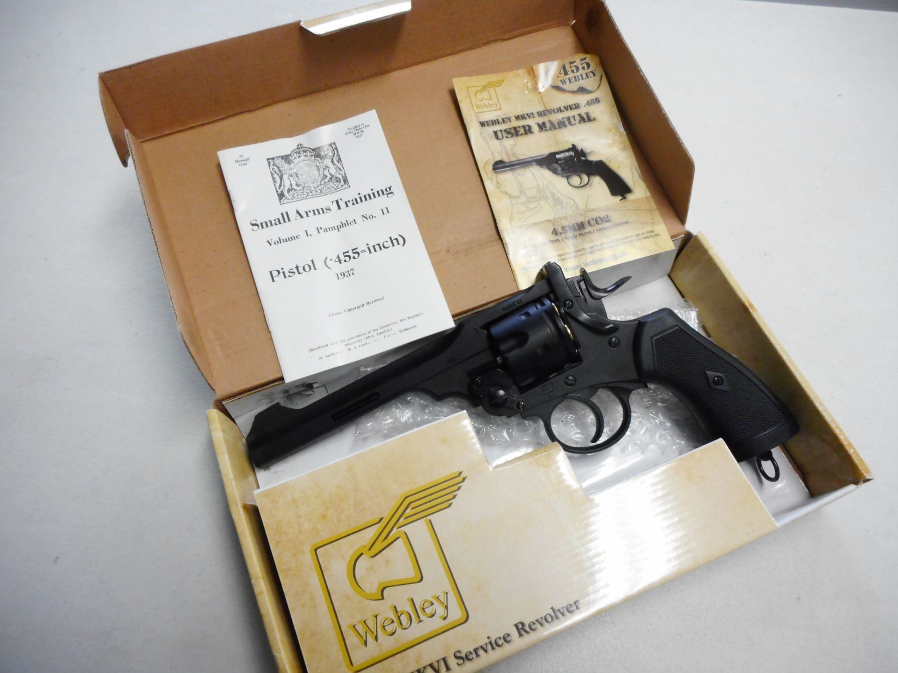 WEBLEY MKVI SERVICE REVOLVER AIRGUN, .455 WEBLEY/ 4.5MM CO2: BASED OFF ORIGINAL 1915 MARKINGS 6" BARREL, 6 SHOT, WITH BOX MANUAL & SMALL ARMS TRAINING PISTOL PAMPHLET
