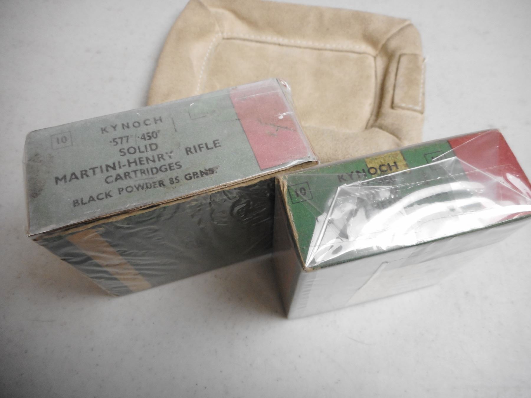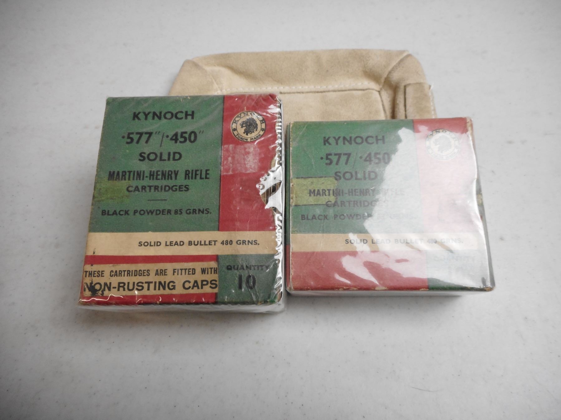 EMPTY ANTIQUE KYNOCH 577/450 MARTINI HENRY BOXES, BLACK POWDER 1-PIECE BOXES, LOT OF 2