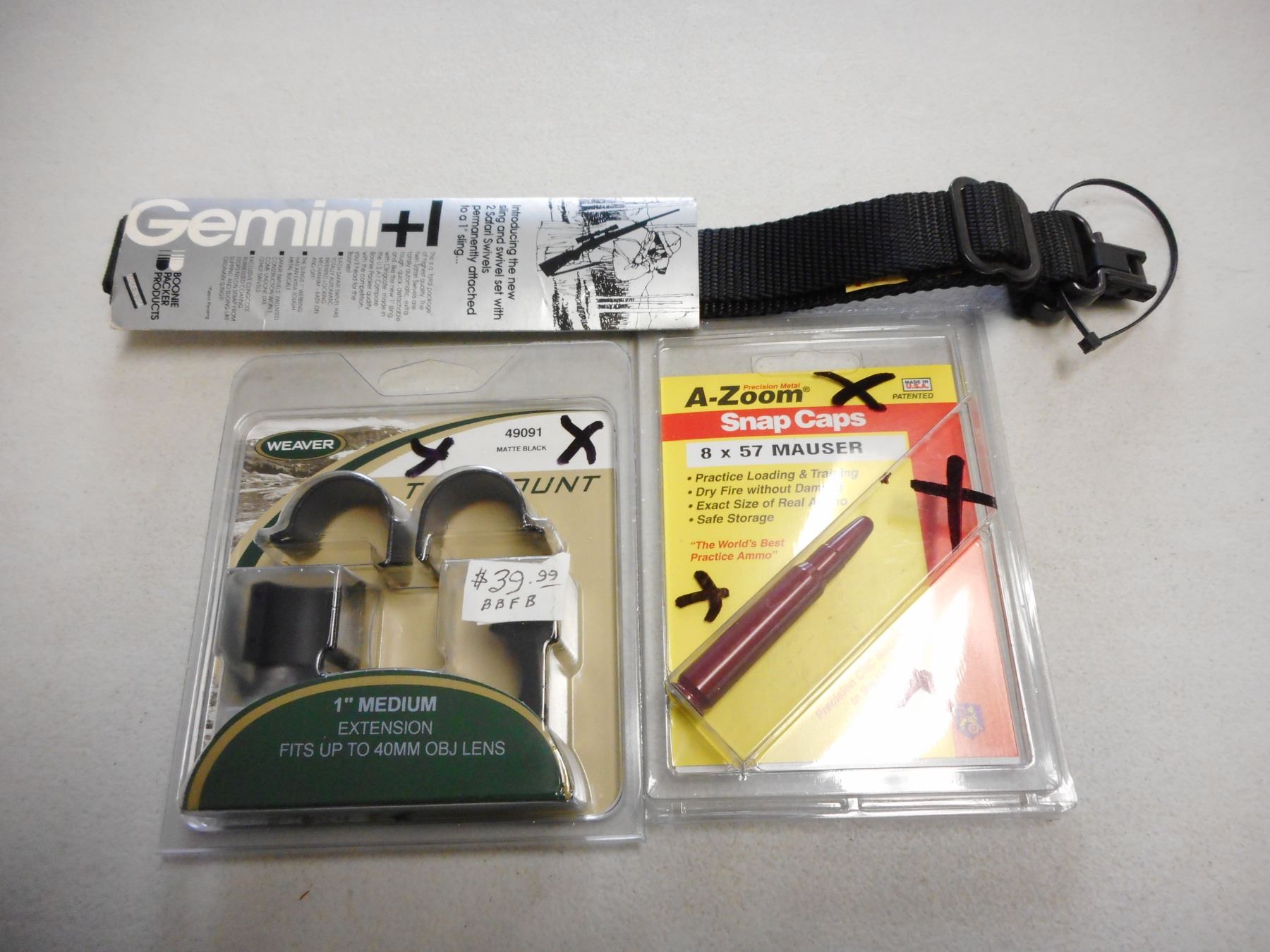 SLING, SCOPE MOUNT & SNAP CAP, INCLUDES RIFLE SLING, WEAVER 1" MEDIUM SCOPE MOUNT, 8 X 57 MAUSER A-ZOOM SNAP CAP