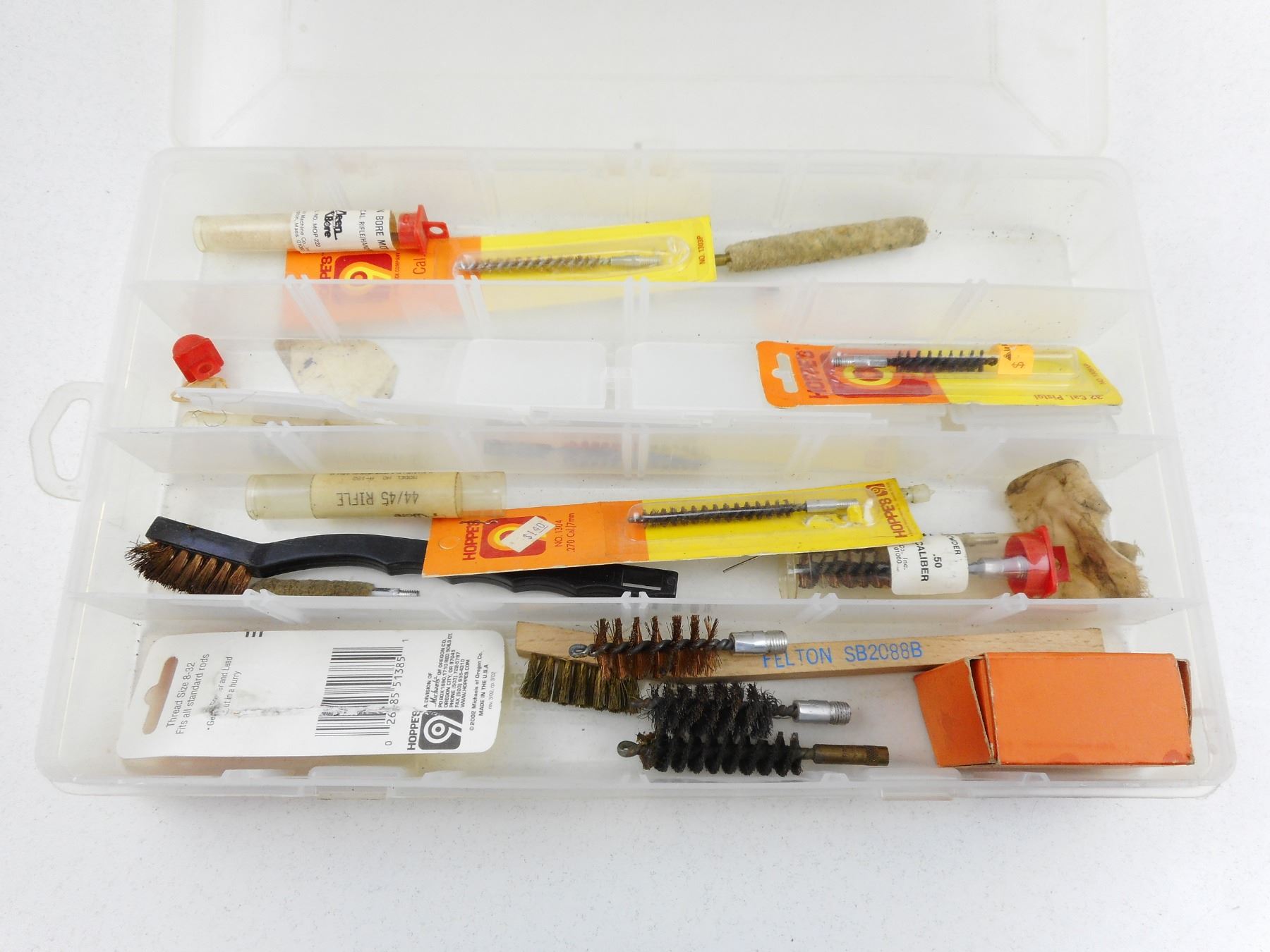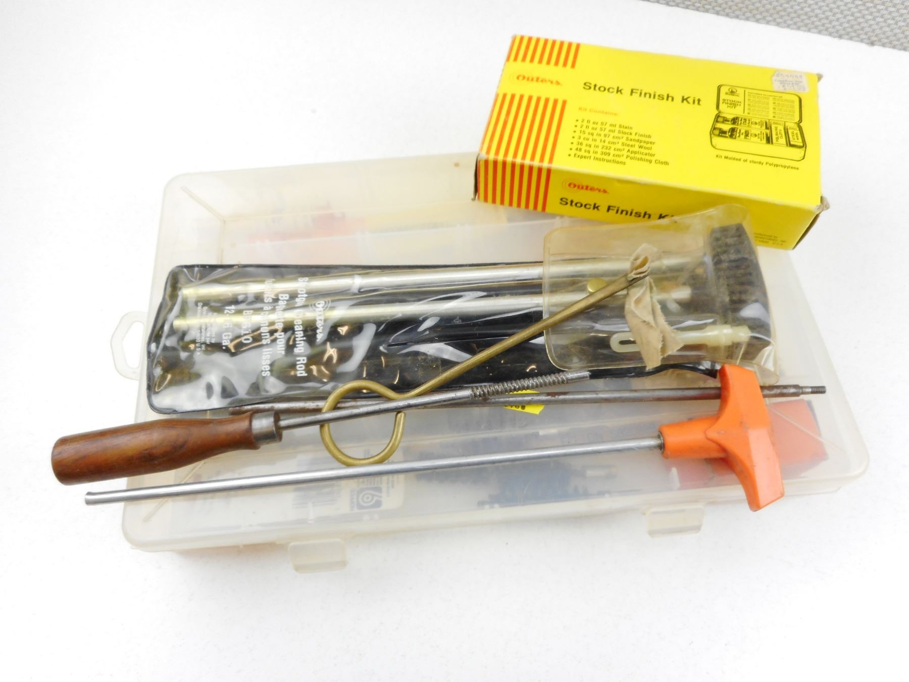 ASSORTED CLEANING TOOLS , INCLUDES OUTERS STOCK FINISH KIT, ASSORTED CLEANING RODS & BRUSHES IN ORGANIZER