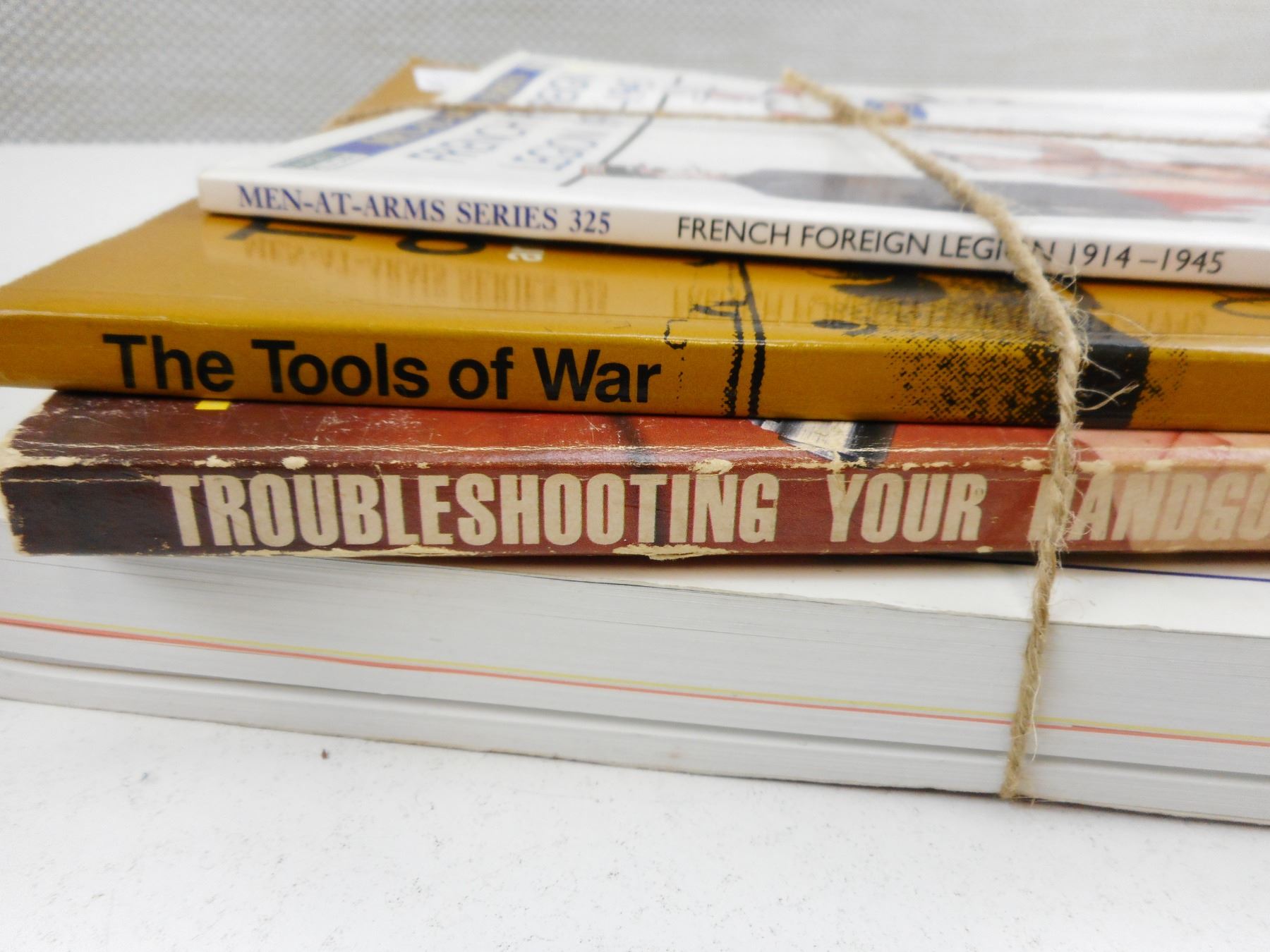 ASSORTED MILITARY & FIREARMS BOOKS, (1) FRENCH FOREIGN LEGION 1914-1945, (1) TOOL OF WAR 1939-1945, (1) TROUBLESHOOTING YOUR HANDGUN, (1) BROWNELLS CATALOG, LOT OF 4