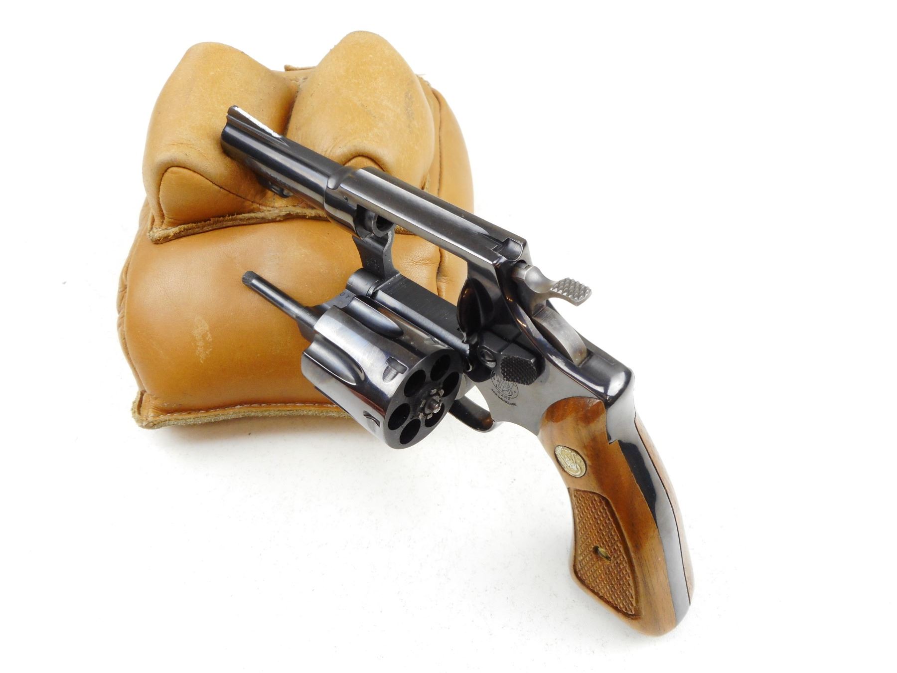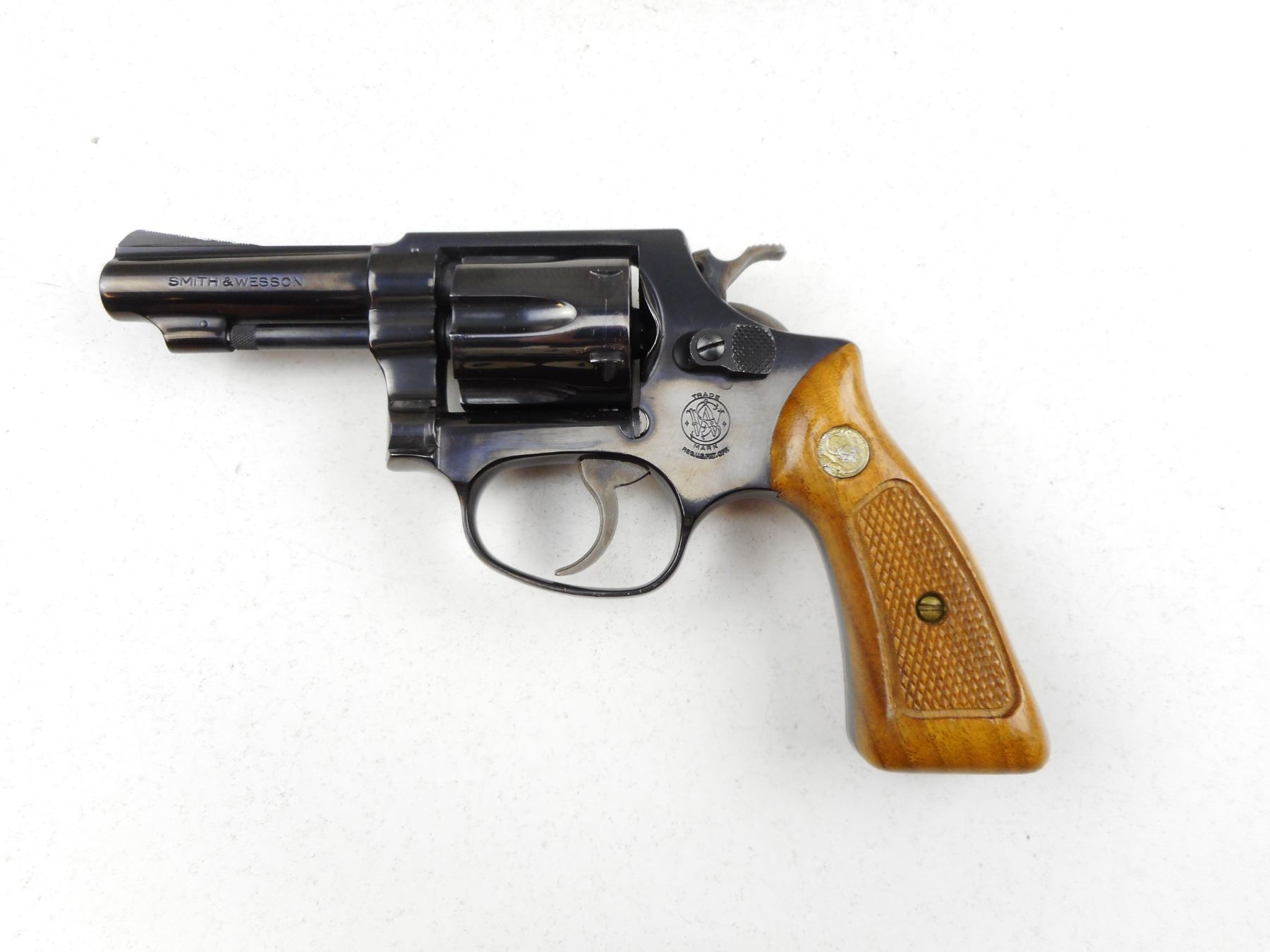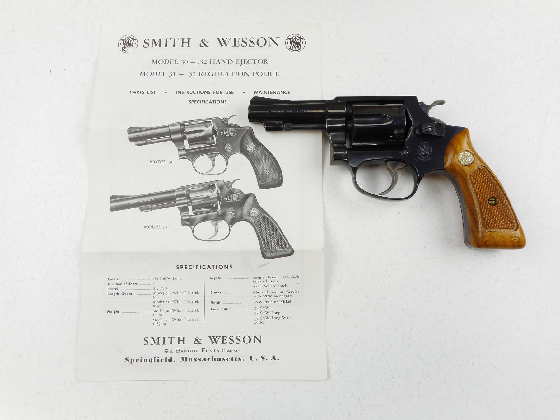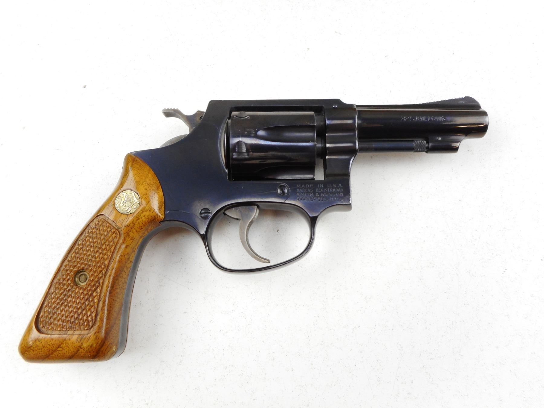 SMITH & WESSON , MODEL: 31-1 , CALIBER: 32 S&W LONG , COMES WITH MANUAL, 6 SHOT CAPACITY, RAMP FRONT AND GROOVED REAR SIGHT, CHECKERED WOOD GRIP PANELS WITH S&W LOGO, BORE IS VERY GOOD, SHOWS VERY LITTLE HANDLING MARKS , ACTION: REVOLVER , BARREL LENGTH:76MM , CONDITION: 8/10 , SERIAL # H117433 , CANADIAN CLASS PROHIBITED