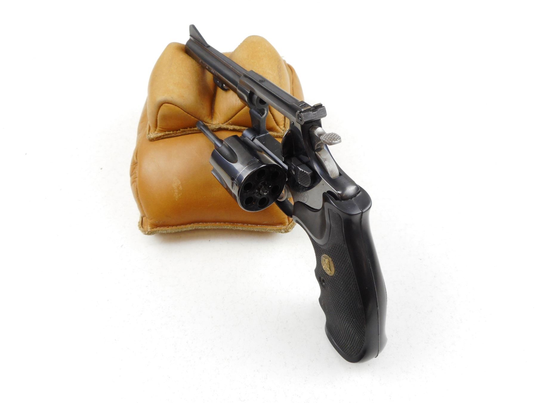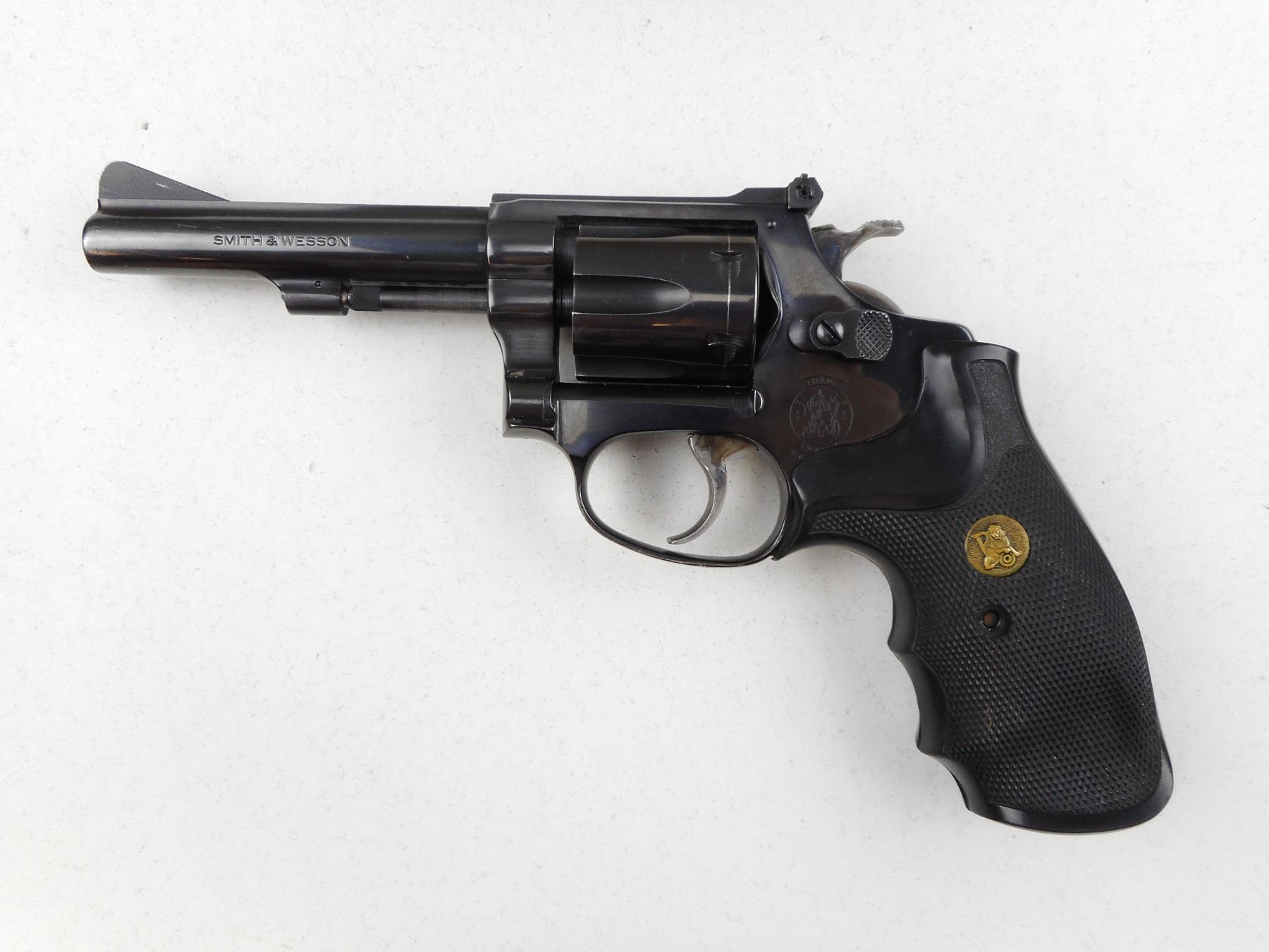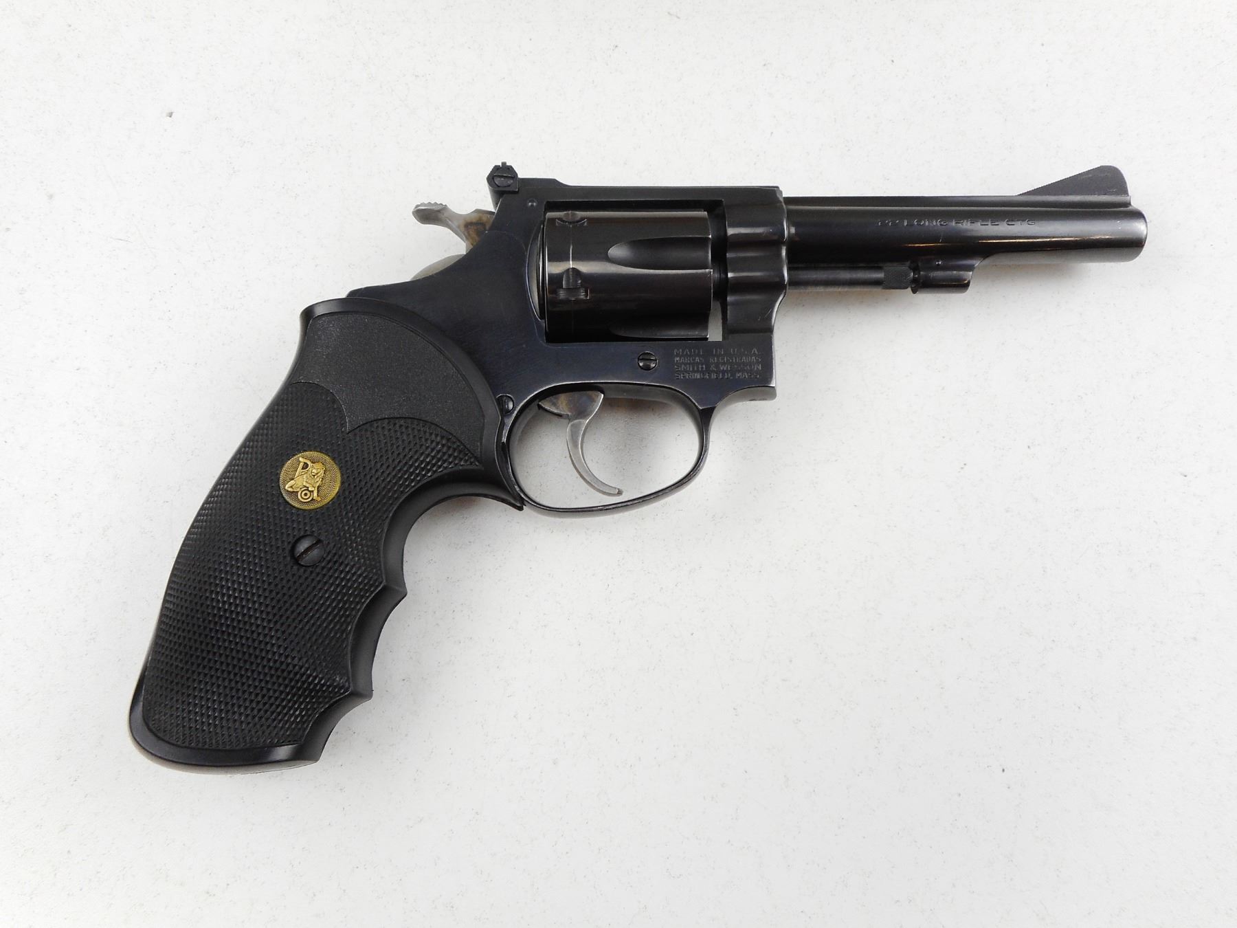 SMITH & WESSON , MODEL: 34-1 , CALIBER: 22 LR , 6 SHOT CAPACITY, VERY GOOD BORE, RAMP FRONT AND ADJUSTABLE REAR SIGHTS, PACHMAYR GRIPS, SHOWS VERY LITTLE HANDLING MARKS , ACTION: REVOLVER , BARREL LENGTH:102MM , CONDITION: 8/10 , SERIAL # M222579 , CANADIAN CLASS PROHIBITED