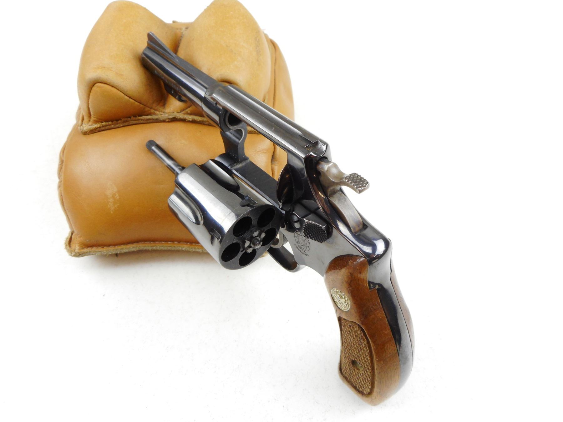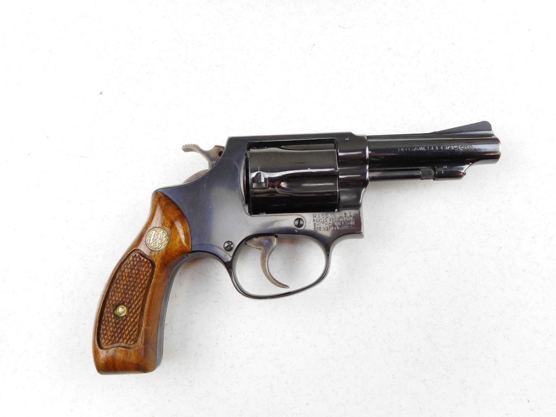 SMITH & WESSON , MODEL: 36 , CALIBER: 38 SPECIAL , 5 SHOT CAPACITY, VERY GOOD BORE, RAMP FRONT AND GROOVED REAR SIGHT, CHECKERED WOOD GRIP PANELS WITH S&W LOGO, SHOWS VERY LITTLE HANDLING MARKS , ACTION: REVOLVER , BARREL LENGTH:76MM , CONDITION: 8/10 , SERIAL # 446J69 , CANADIAN CLASS PROHIBITED