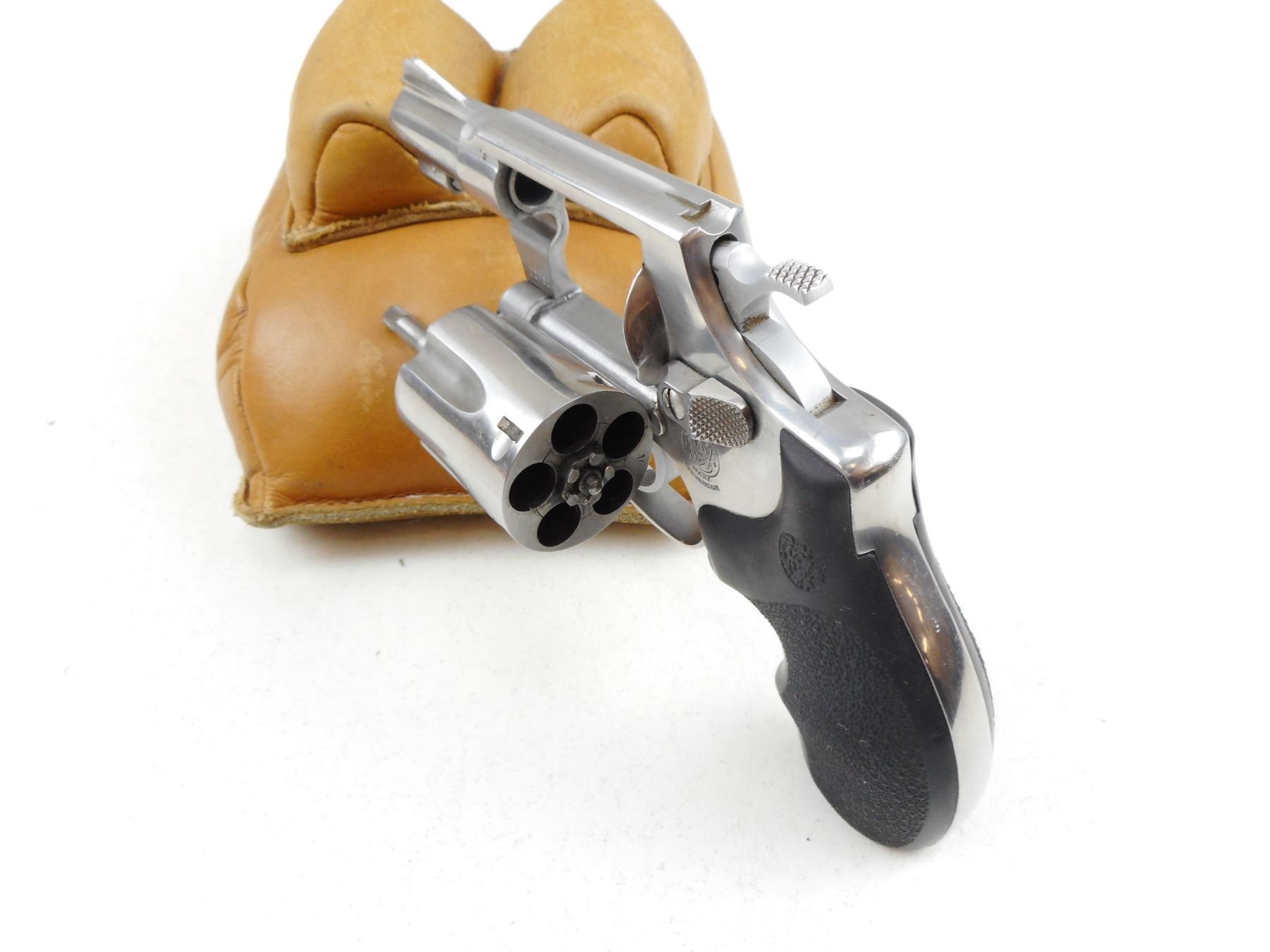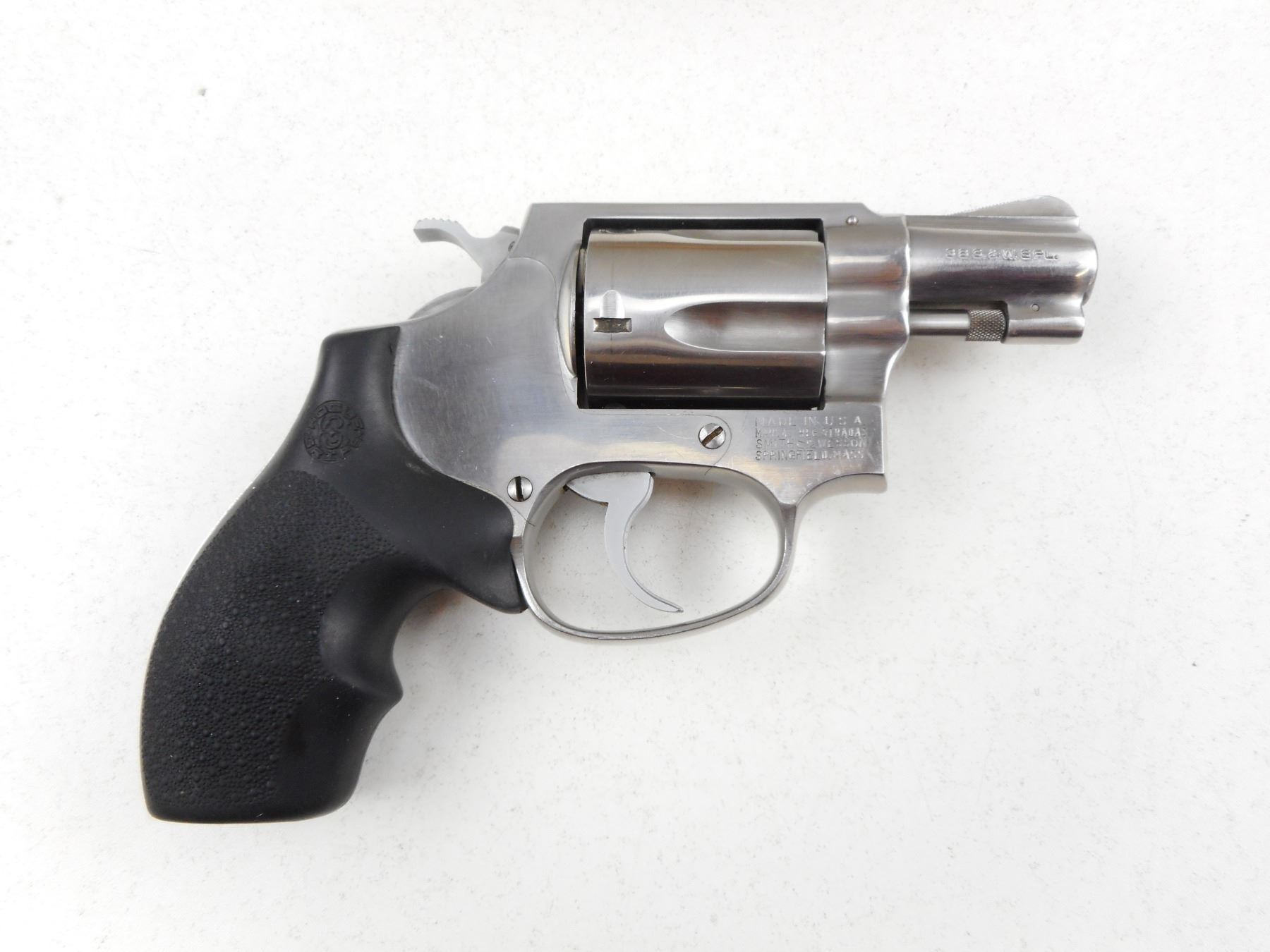 SMITH & WESSON , MODEL: 60 , CALIBER: 38 SPECIAL , 5 SHOT CAPACITY, BORE IS VERY GOOD, RAMP FRONT AND GROOVED REAR SIGHT, SYNTHETIC HOGUE GRIPS, SHOWS SOME HANDLING MARKS , ACTION: REVOLVER , BARREL LENGTH:51MM , CONDITION: 7/10 , SERIAL # R103711 , CANADIAN CLASS PROHIBITED