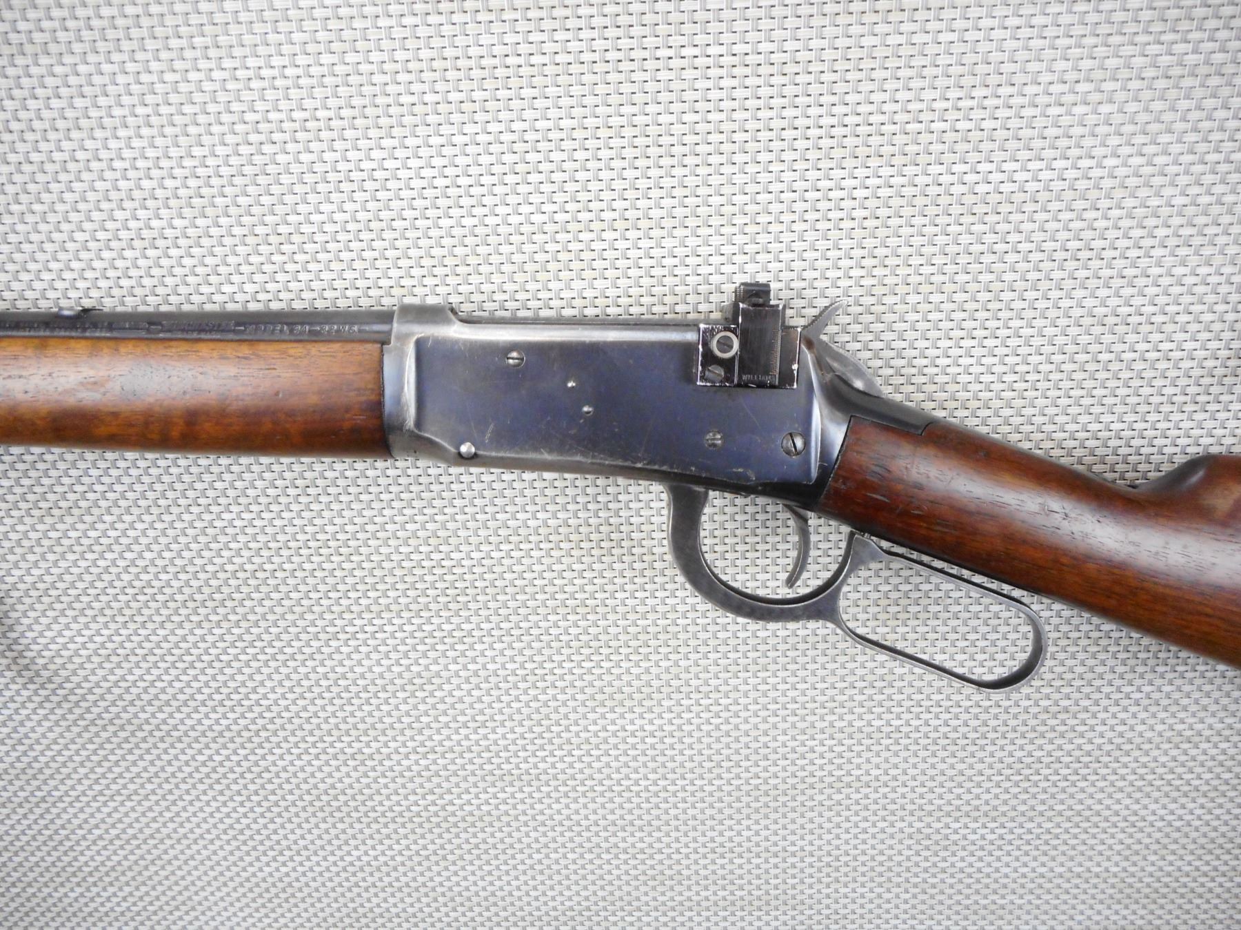 WINCHESTER , MODEL: 94 , CALIBER: 32 WINCHESTER SPECIAL , MANUFACTURED 1948, BORE IS VERY GOOD, HOODED FRONT AND WILLIAMS PEEP SIGHT, SHOWS SOME HANDLING MARKS, STEEL BUTT PLATE , ACTION: LEVER ACTION RIFLE , BARREL LENGTH:20" , CONDITION: 6/10 , SERIAL # 1550871 , CANADIAN CLASS NON RESTRICTED