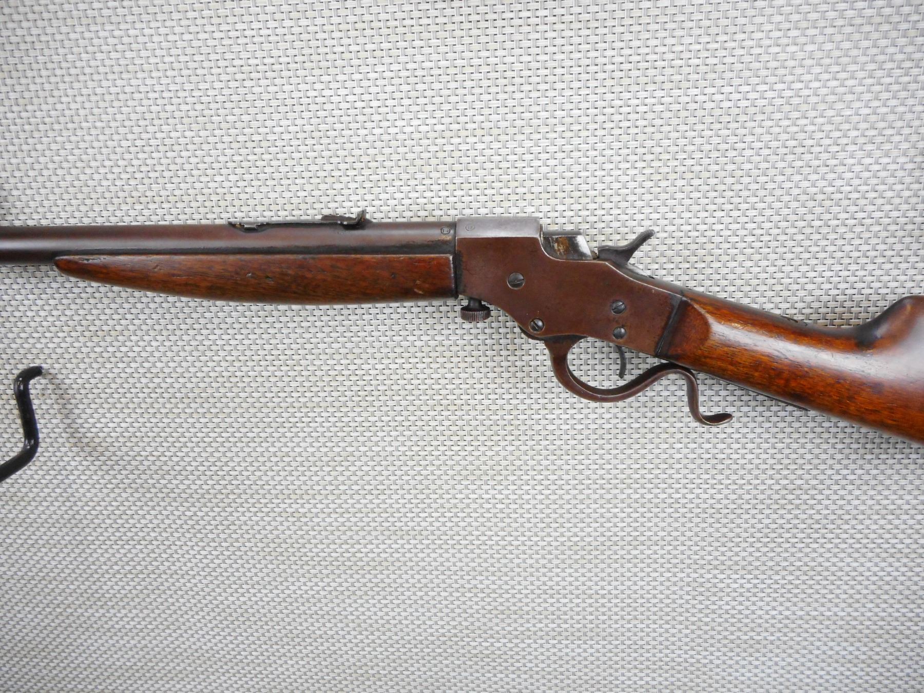 STEVENS , MODEL: 1915 FAVORITE , CALIBER: 25 STEVENS , GOOD BORE, BLADE FRONT AND ADJUSTABLE REAR SIGHTS REPAIRED PLASTIC BUTT PLATE, SHOWS SOME HANDLING MARKS , ACTION: FALLING BLOCK SINGLE SHOT , BARREL LENGTH:24" , CONDITION: 5/10 , SERIAL # V378 , CANADIAN CLASS NON RESTRICTED