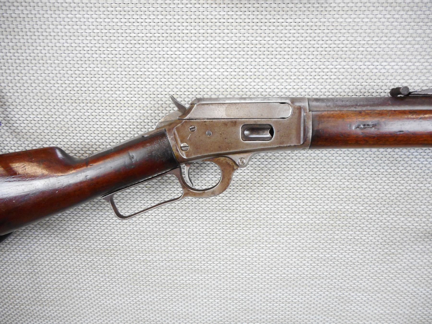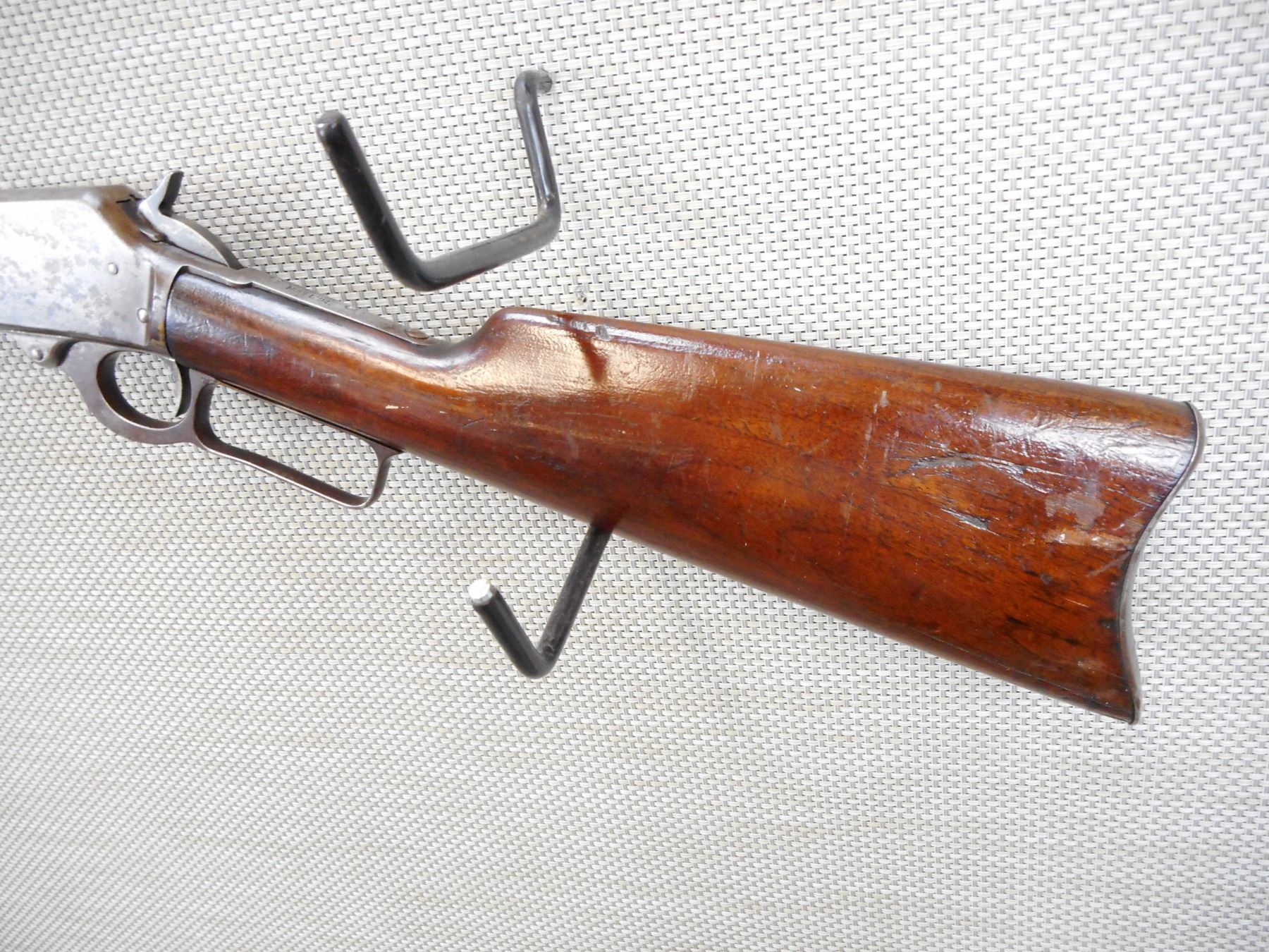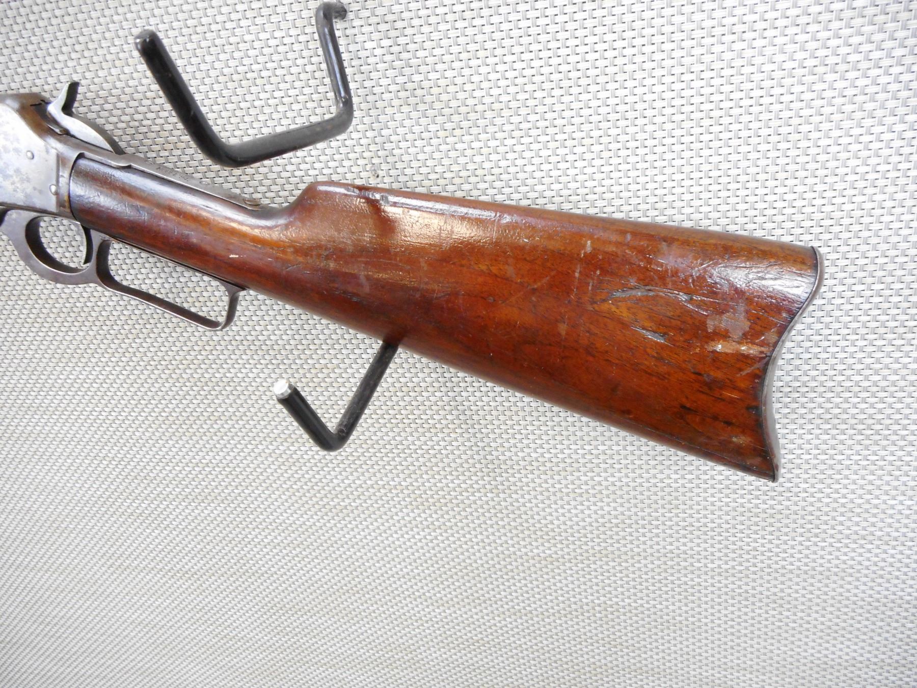 MARLIN , MODEL: 94 , CALIBER: 44-40 , VERY GOOD BORE WITH VERY STRONG RIFLING, BLADE FRONT AND ADJUSTABLE REAR SIGHT, SHOWS EXTENSIVE HANDLING MARKS, STEEL BUTT PLATE , ACTION: LEVER ACTION RIFLE , BARREL LENGTH:22" , CONDITION: 5/10 , SERIAL # 415207 , CANADIAN CLASS NON RESTRICTED