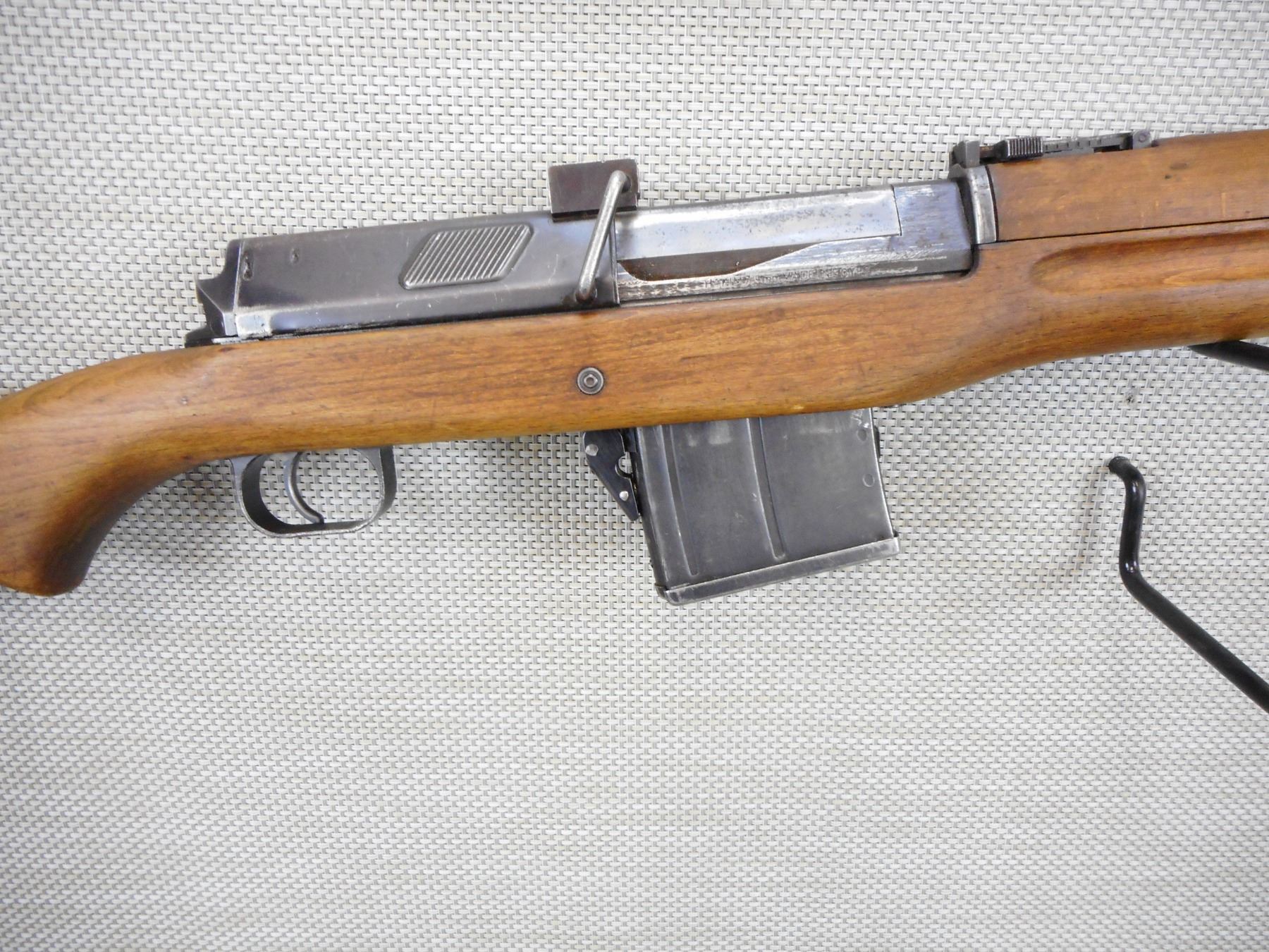 LJUNGMANN , MODEL: HAKIM , CALIBER: 7.9 MM MAUSER , COMES WITH MAGAZINE, VERY GOOD BORE, HOODED FRONT AND ADJUSTABLE REAR SIGHTS, RETAINS FULL MILITARY CONFIGURATION, SLING SWIVEL STUDS, SHOWS SOME HANDLING MARKS, STEEL BUTT PLATE , ACTION: SEMI AUTOMATIC RIFLE , BARREL LENGTH:23" , CONDITION: 7/10 , SERIAL # N/A , CANADIAN CLASS NON RESTRICTED