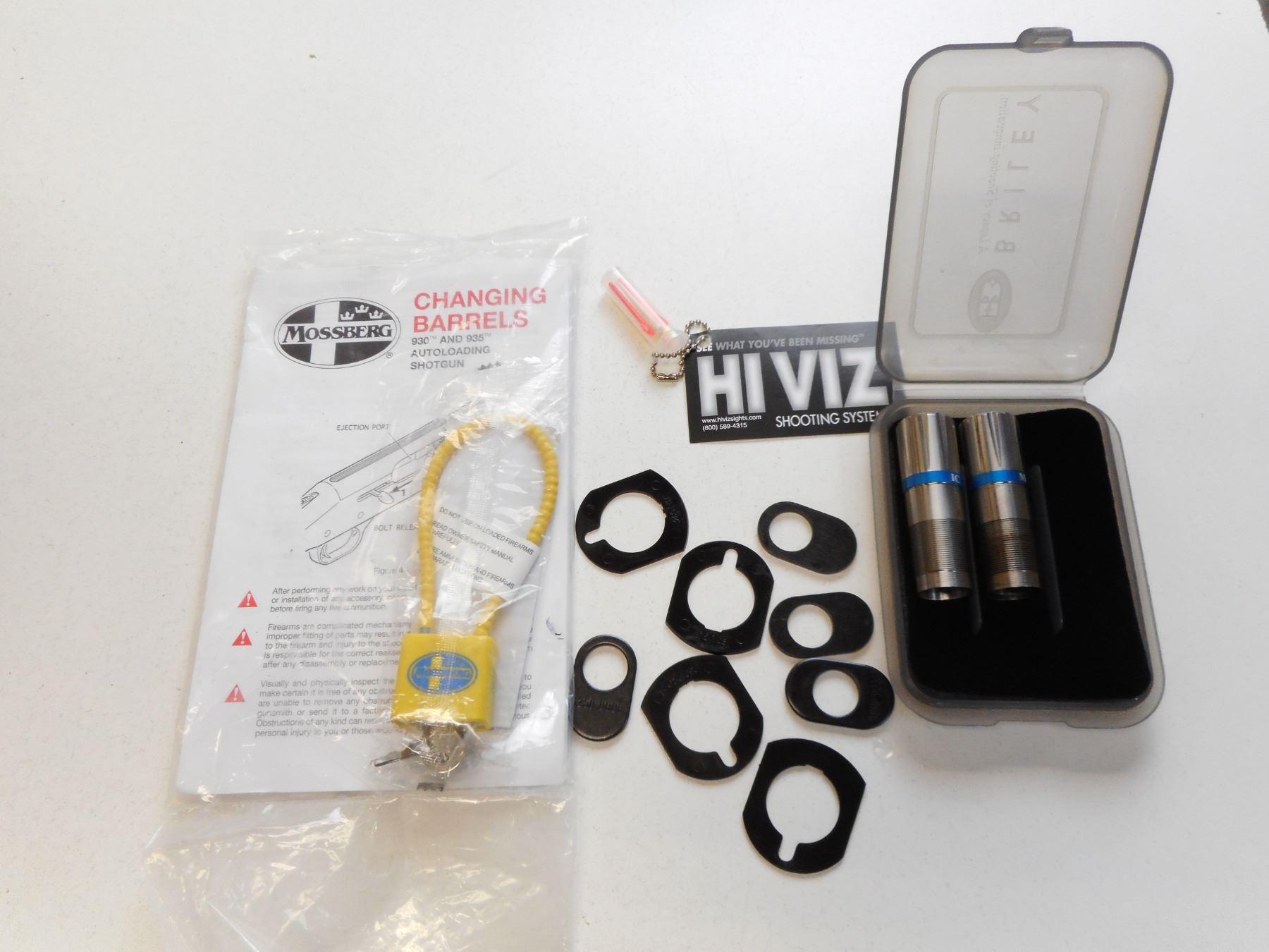 MOSSBERG , MODEL: 930 , CALIBER: 12GA X 3" , COMES WITH ACCU CHOKE SYSTEM WITH A TOTAL OF 3 CHOKES WITH A CASE WITH A WRENCH ONE IS INSTALLED, EXTRA FIBER OPTIC INSERTS, CABLE LOCK, MANUAL AS WELL AS STOCK SPACERS, FIBER OPTIC FRONT SIGHT ON A VENTED RIB BARREL, TEXTURED FOREND AND SEMI PISTOL GRIP BUTT STOCK WITH RUBBER RECOIL PAD, DRILLED AND TAPPED FOR SCOPE MOUNTS, SHOWS VERY LITTLE HANDLING MARKS, THERE IS LIGHT DISCOLOURATION IN BORE NEAR MUZZLE , ACTION: SEMI AUTOMATIC SHOTGUN , BARREL LENGTH:28" , CONDITION: 8/10 , SERIAL # AF217438 , CANADIAN CLASS NON RESTRICTED