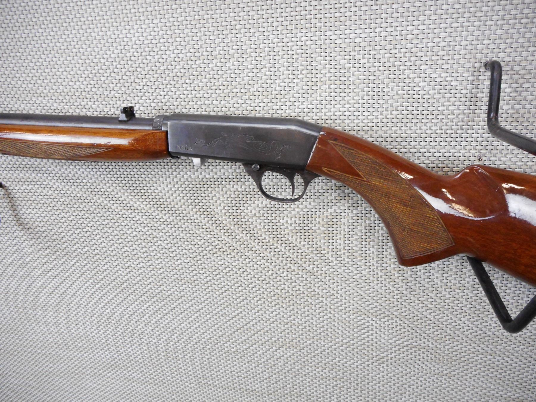 NORINCO , MODEL: JW 20 , CALIBER: 22 LR , VERY GOOD BORE, BLADE FRONT AND FIXED REAR SIGHTS, CHECKERED FOREND AND SEMI PISTOL GRIP BUTT STOCK WITH STEEL BUTT PLATE, SHOWS SOME HANDLING MARKS , ACTION: SEMI AUTOMATIC RIFLE , BARREL LENGTH:19" , CONDITION: 7/10 , SERIAL # 914127 , CANADIAN CLASS NON RESTRICTED