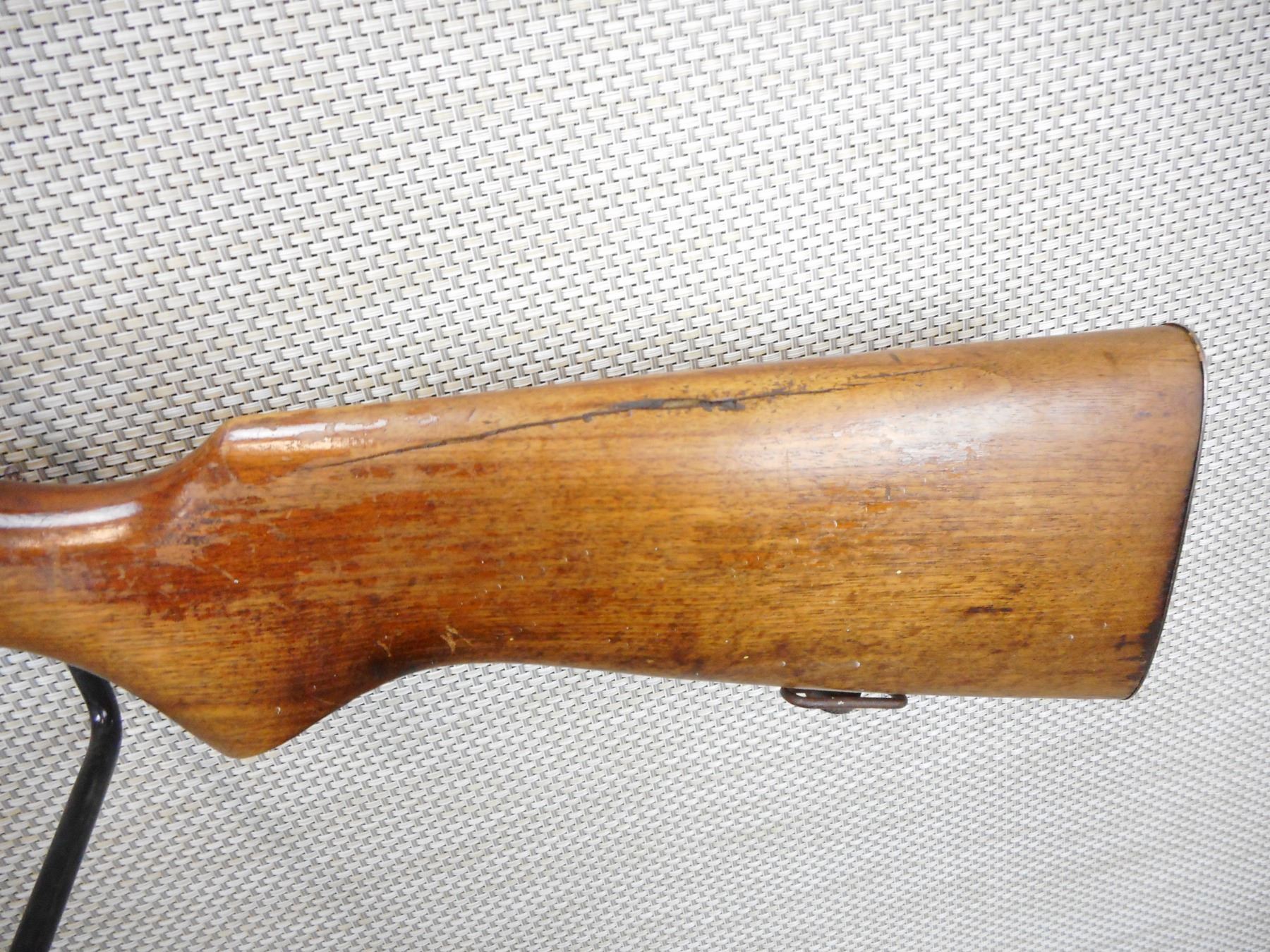 COOEY , MODEL: 75 , CALIBER: 22 LR , BORE IS GOOD, BLADE FRONT AND ADJUSTABLE REAR SIGHT MISSING THE ELEVATOR, SHOWS EXTENSIVE HANDLING MARKS, STEEL BUTT PLATE , ACTION: BOLT ACTION SINGLE SHOT RIFLE , BARREL LENGTH:27" , CONDITION: 5/10 , SERIAL # N/A , CANADIAN CLASS NON RESTRICTED