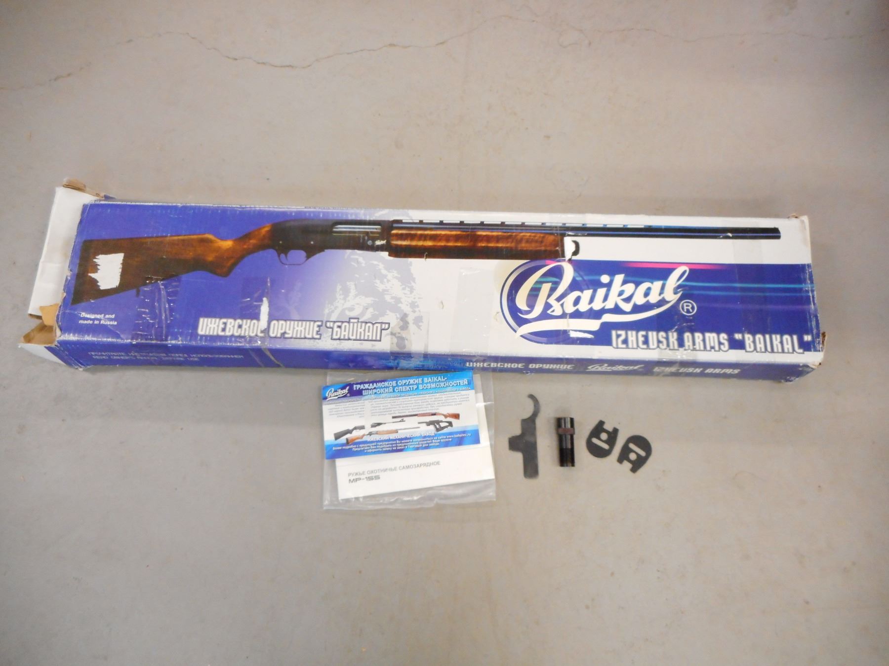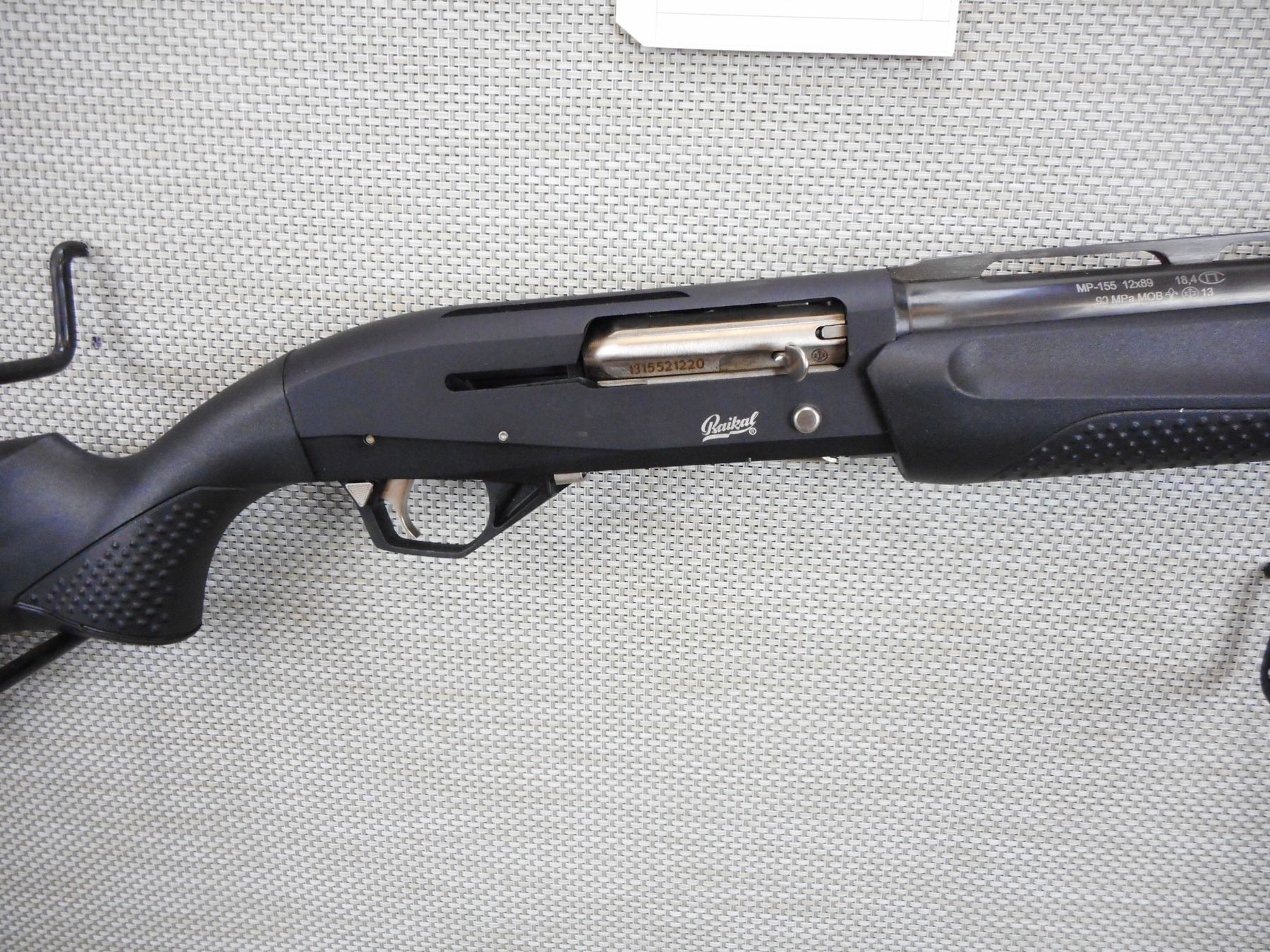 BAIKAL , MODEL: MP155 , CALIBER: 12GA X 3 1/2" , COMES WITH A BOX, EXTERNAL REMOVEABLE CHOKE, BORE IS EXCELLENT, FIBEROPTIC FRONT ON A VENTED RIB BARREL, SYNTHETIC FOREND AND BUTT STOCK, VENTED RUBBER RECOIL PAD, SLING SWIVEL LOOPS, SHOWS VERY LITTLE HANDLING MARKS , ACTION: SEMI AUTOMATIC SHOTGUN , BARREL LENGTH:28" , CONDITION: 8/10 , SERIAL # 1315521220 , CANADIAN CLASS NON RESTRICTED