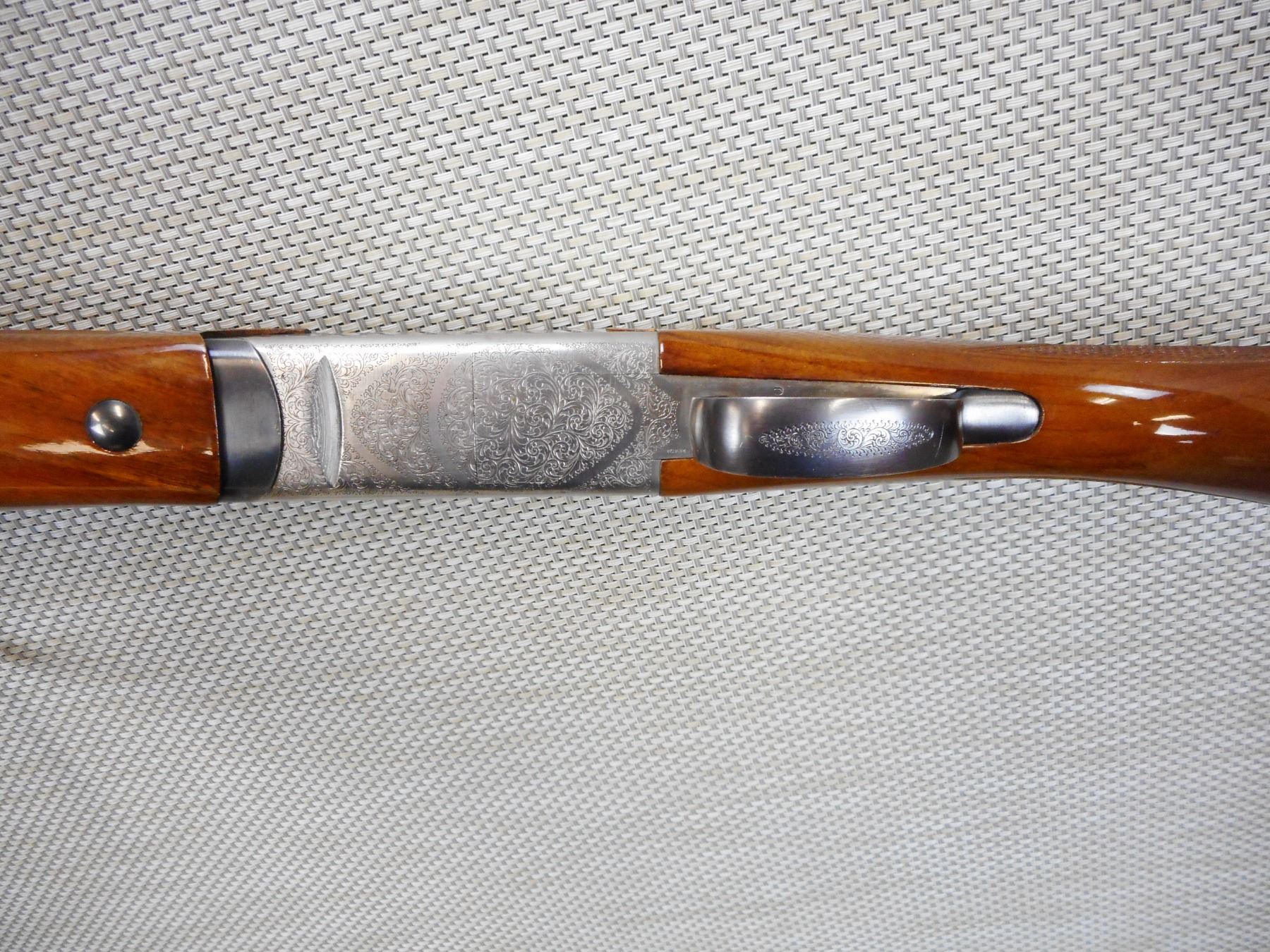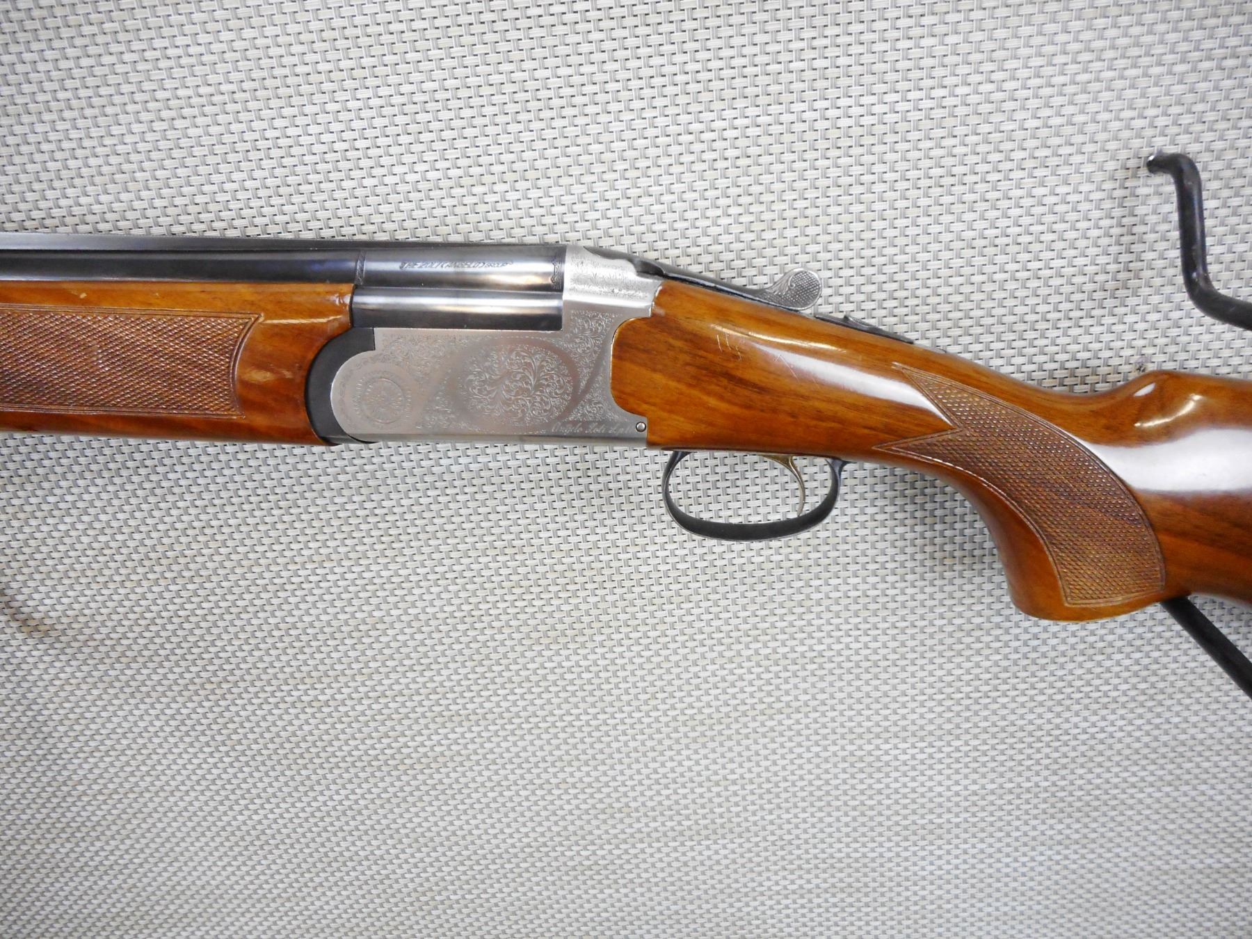 ANGELO ZOLI , MODEL: OVER UNDER SHOTGUN , CALIBER: 12GA X 3" , BORES ARE VERY GOOD, FIXED FULL AND MODIFIED CHOKES, BEAD FRONT SIGHT ON A VENTED RIB BARREL, EJECTORS, CHECKERED FOREND AND SEMI PISTOL GRIP BUTT STOCK, SINGLE TRIGGER, VENTED RUBBER RECOIL PAD, FRONT SLING SWIVEL, SHOWS VERY LITTLE HANDLING MARKS, LIGHTLY ENGRAVED RECEIVER FRAME , ACTION: OVER UNDER SHOTGUN , BARREL LENGTH:28" , CONDITION: 8/10 , SERIAL # 93421 , CANADIAN CLASS NON RESTRICTED