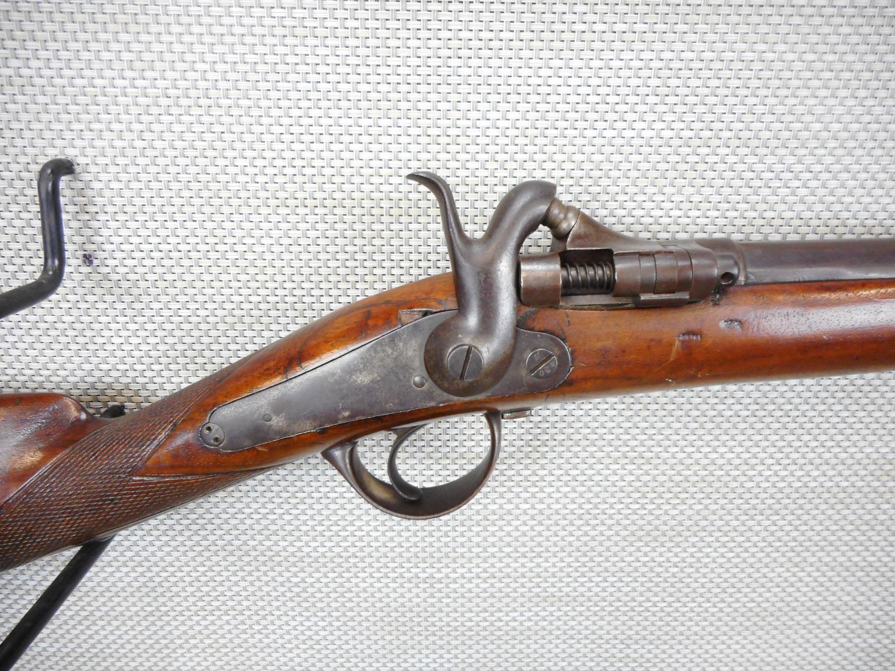 UNKNOWN BELGIAN , ZULU TYPE , 12GA , BROKEN FIRING PIN, CHECKERED FOREND BEAD FRONT SIGHT, METAL BUTT PLATE, SPORTERIZED , ACTION: SINGLE SHOT BREACH BLOCK , BARREL LENGTH: 34 1/2" , CONDTION: 4/10 , SERIAL# 2304 , CLASS: CANADIAN NON RESTRICTED
