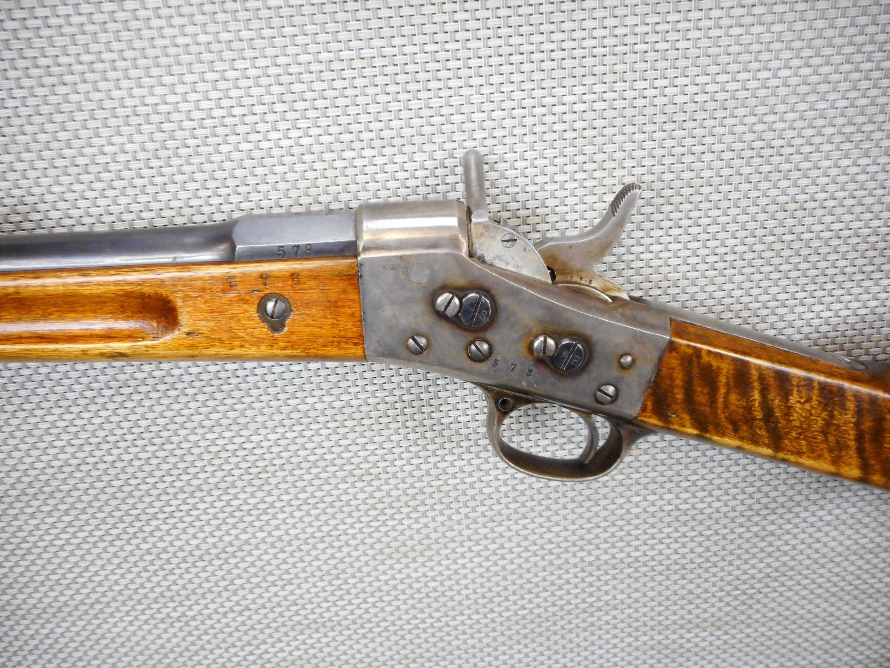 SWEDISH ROLLING BLOCK , SPORTER , 8 X 58R , MANUFACTURED BY CARL GUSTAFS, EXCELLENT BORE, FOLDING LEAF REAR AND BLADE FRONT SIGHT, LEATHER SLING, METAL BUTT PLATE, MONTE CARLO STOCK , ACTION: ROLLING BLOCK , BARREL LENGTH: 33" , CONDTION: 8/10 ANTIQUE , SERIAL# 578 , CLASS: CANADIAN NON RESTRICTED