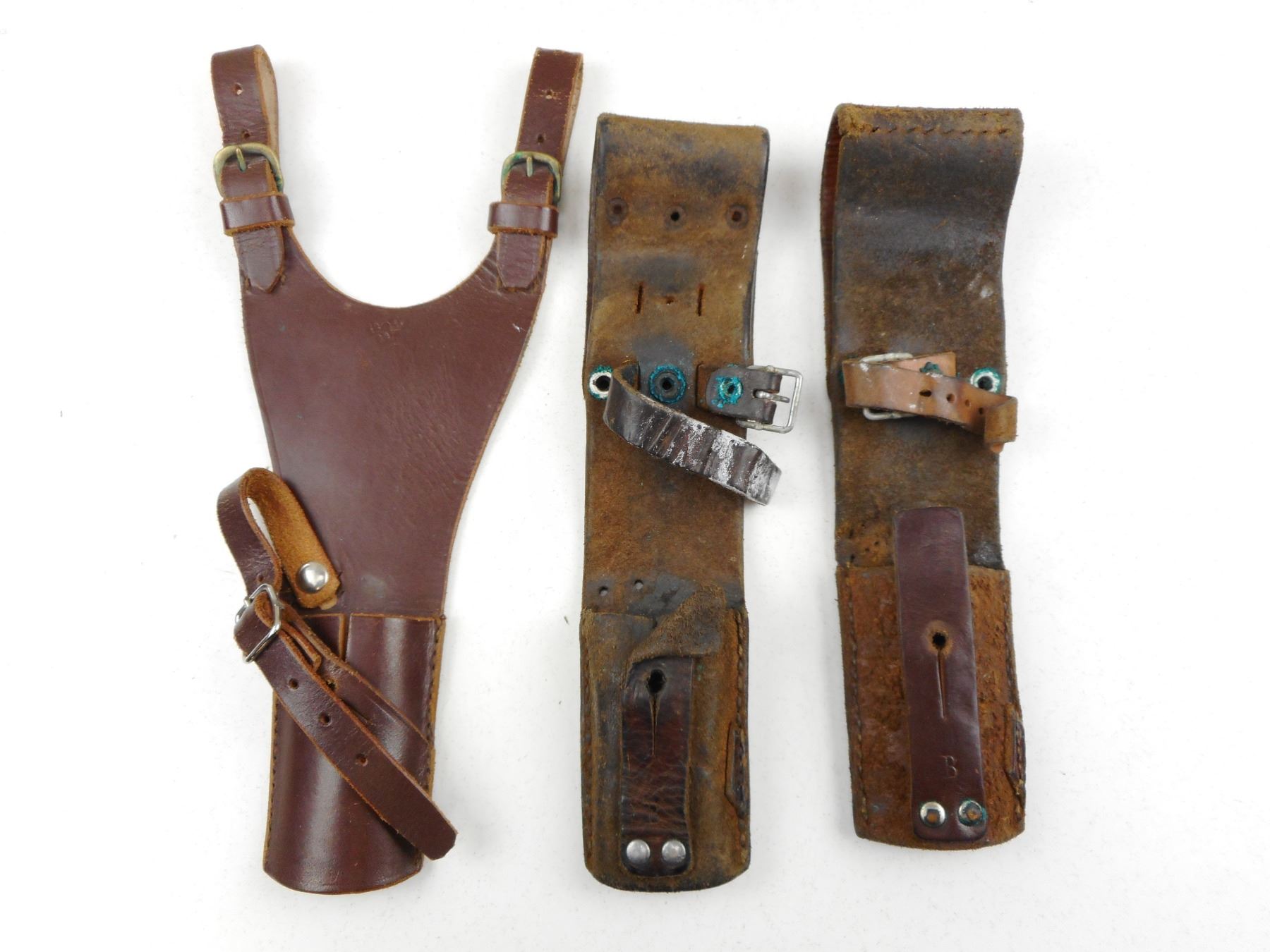 (1) DOUBLE STRAP OFFICER'S FROG, (1) MODIFIED FROGS MARKED B, LOT OF 3