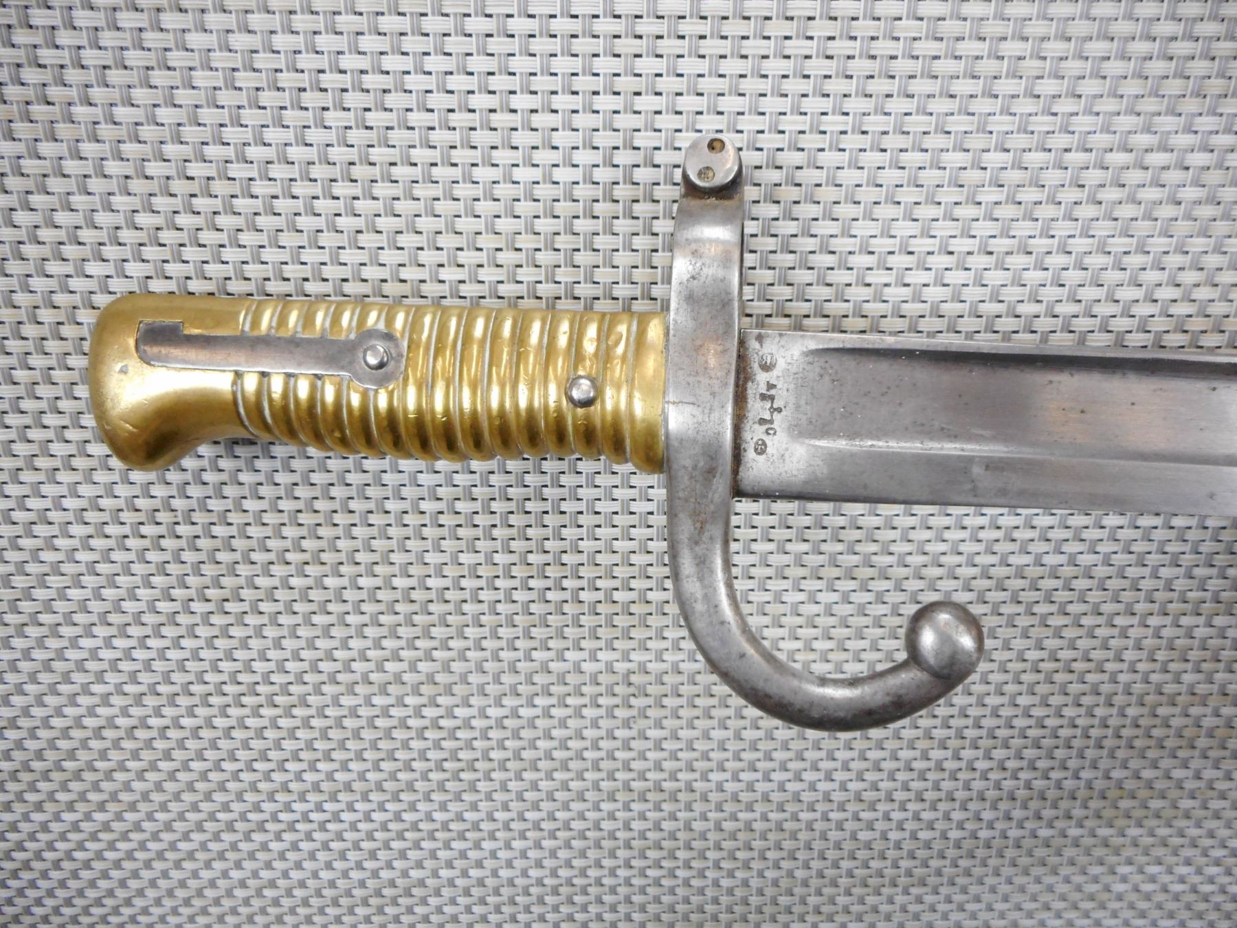 FRENCH 1866 PATTERN YATAGHAN BAYONET , PROOF MARKS ON RICASSO AND CROSSGUARD ALSO MARKED K 10290, BLADE BACKSIDE ETCHED _ DE ST. ETIENNE MARS 1868, NO SCABBARD