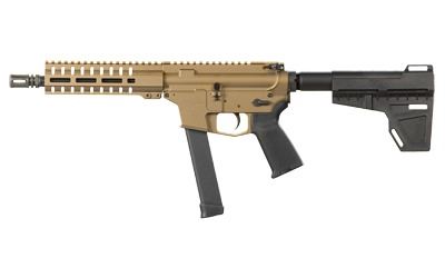 CMMG, MkG-9 Guard Pistol, Semi-automatic, 9MM, 8" Barrel, 1/2x28, Aluminum Frame, Burnt Bronze Finish, KAK Shockwave Pistol Brace, 33Rd, CMMG RML 7" MLOK Handguard, Magpul Pistol Grip, 1 Magazine